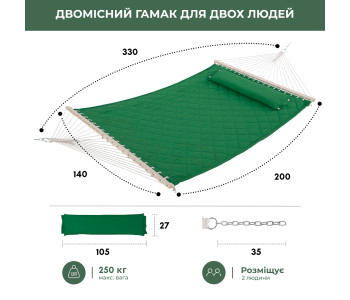 - Двомісний гамак SOFT смарагдовий XXL 200x140 з планками