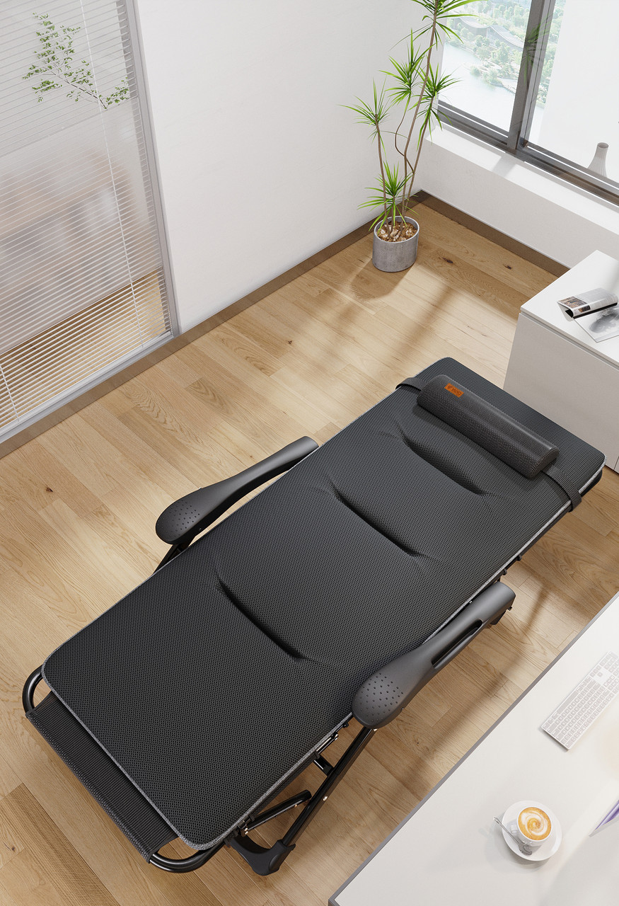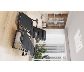 - Регульована спинка: Спинка має кілька положень, що дозволяє вибрати найзручніший кут нахилу для відпочинку, читання або сну.