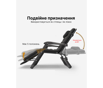 - Зручність у використанні: Простий механізм складання дозволяє швидко розкладати і складати крісло.