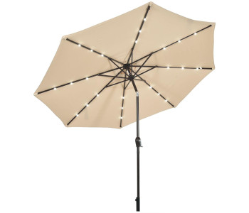 Парасоля оснащена 24 вбудованими світлодіодами (по 3 на кожне ребро), які забезпечують м'яке та затишне освітлення увечері. Важливо, що світлодіоди живляться від сонячної панелі, розташованої на куполі, завдяки чому освітлення екологічне та економне.