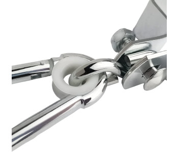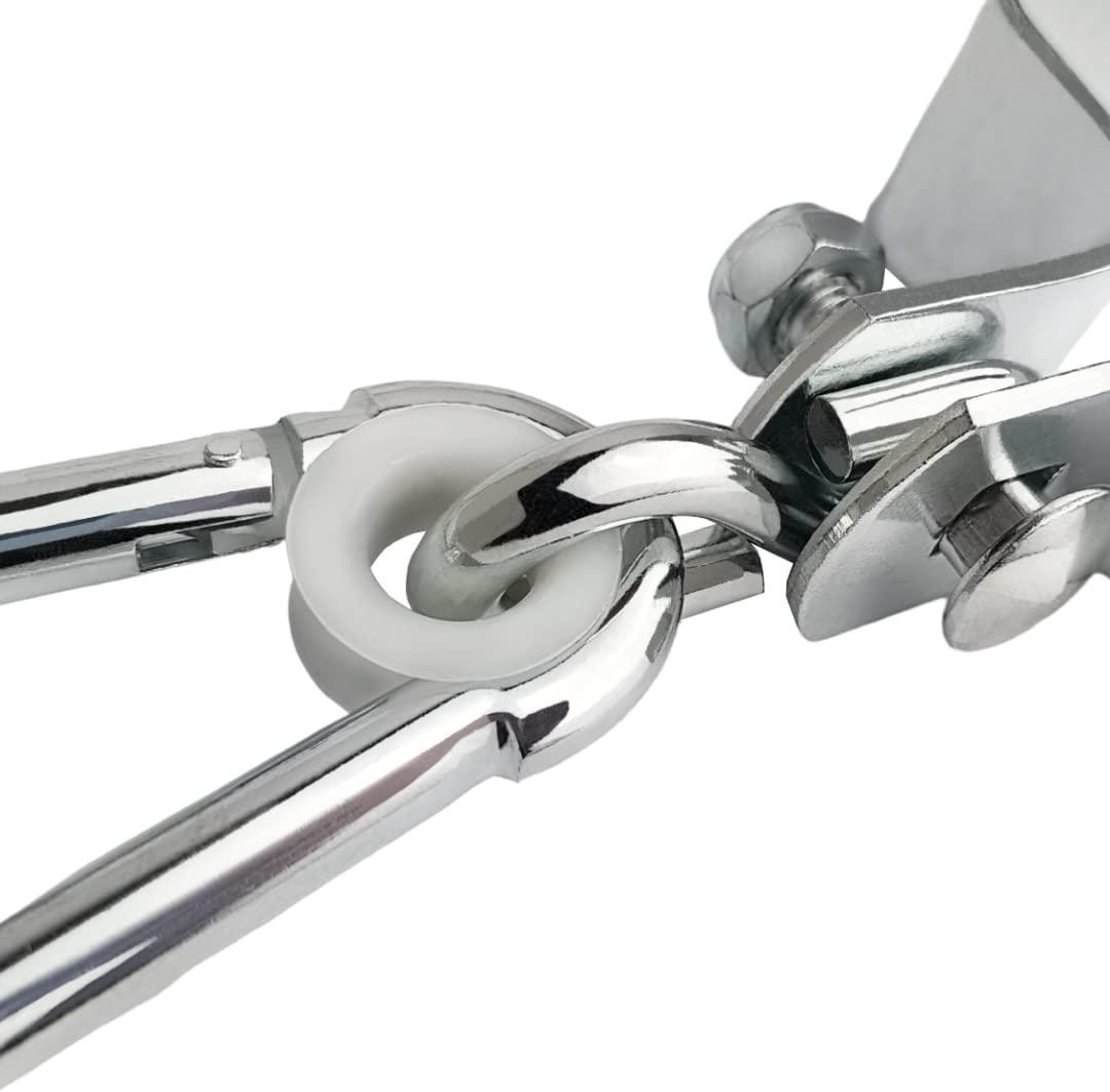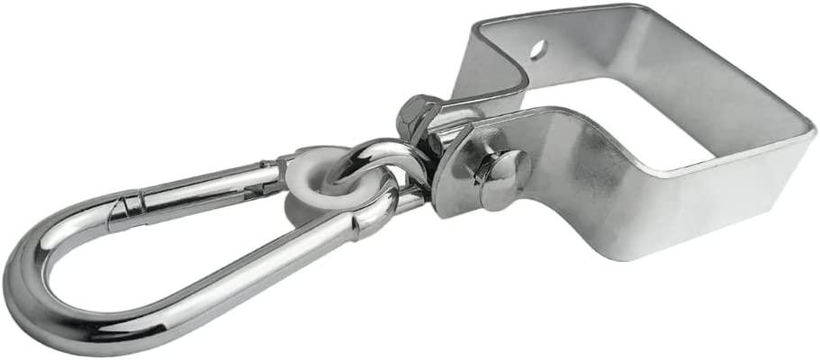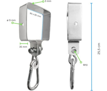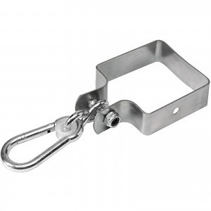 Підвіс для гойдалок виготовлений з високоякісної сталі товщиною 3 мм, та комплектується карабіном з нейлоновою втулкою. Нейлонова втулка є набагато міцнішою ніж пластикова, вона забезпечує менше тертя та знижує шум.