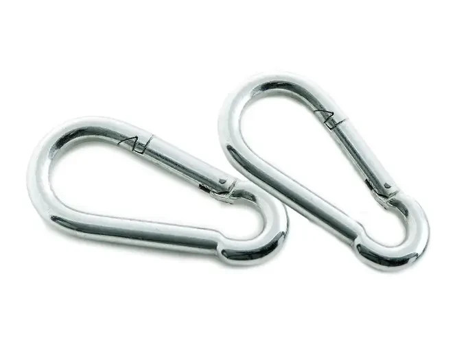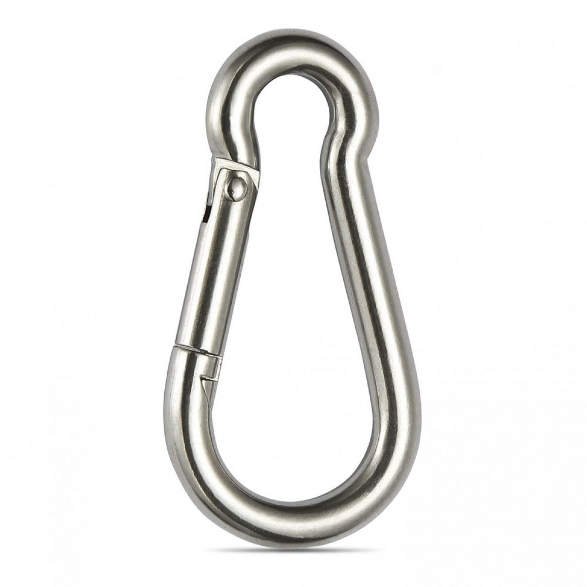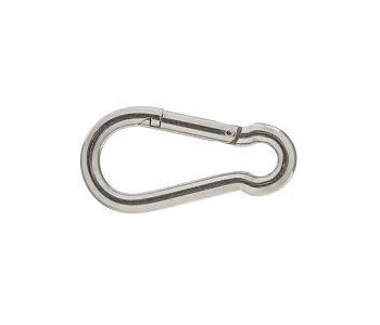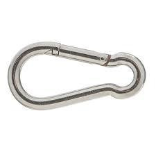Карабін пожежний швидко роз'ємний (стандарт DIN 5299C), оснащений пружинною засувкою. Призначений для кріплення і надійного з'єднання тросів, страхувальних канатів і ланцюгів між собою та до інших об'єктів. Виріб витримує високе робоче навантаження і навантаження на розрив.