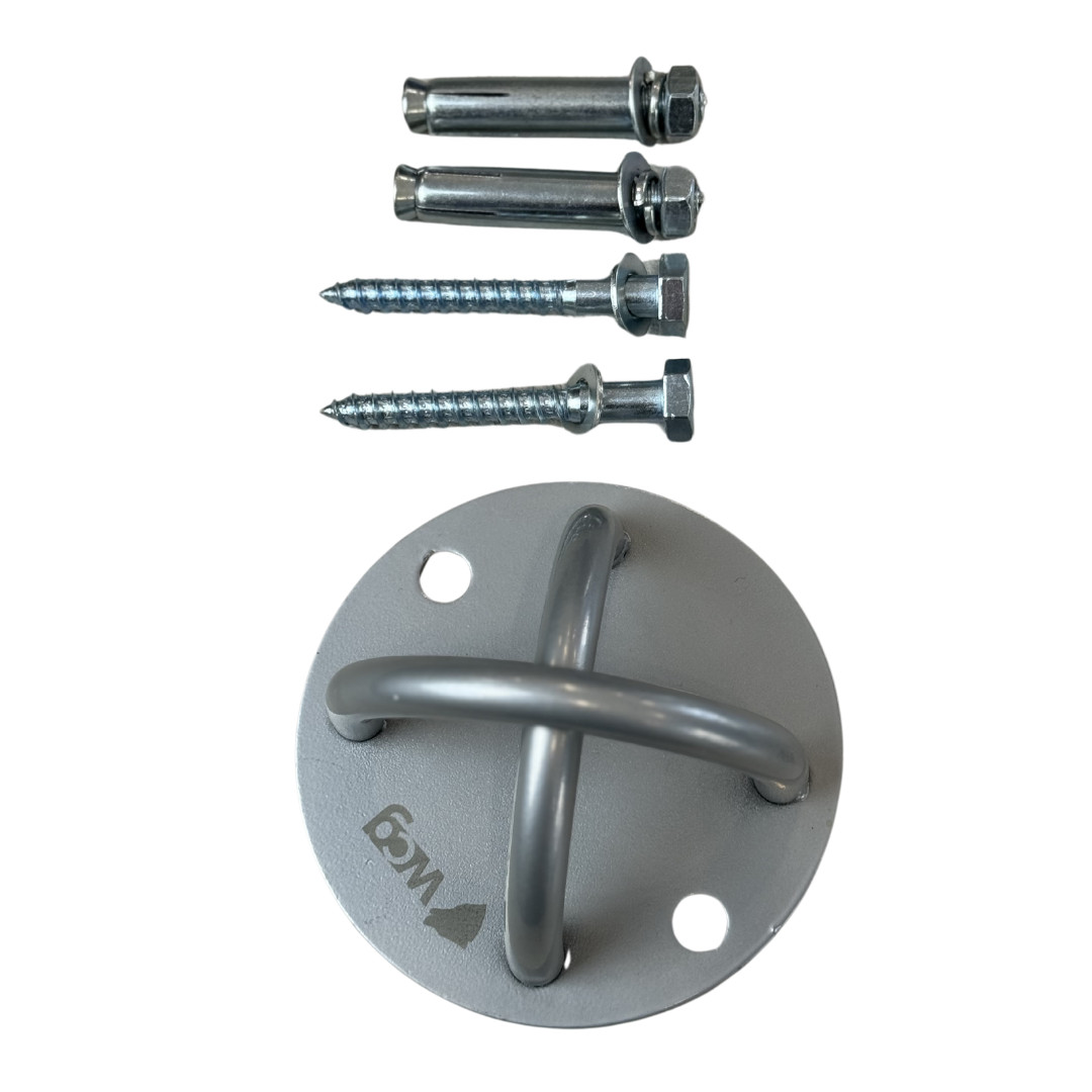 Стельовий анкерний гачок для крісел-гамаків, гойдалок, гімнастичних кілець, ремінця, настінного кріплення для повітряної йоги. Високоякісна залізна монтажна пластина надійно кріпиться болтами до балок, дощок, бетонної стелі або будь-якої іншої верхньої поверхні.