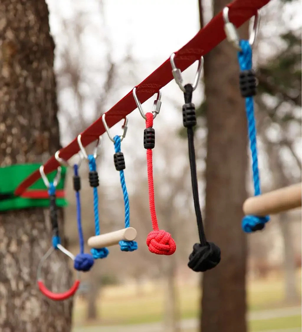 Простота установки Ninja line дозволяє обладнати смугу перешкод у будь-якому місці ! Просто прикріпіть його між 2 стовпами або здоровими деревами.