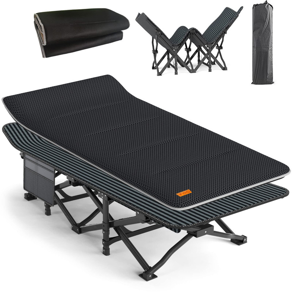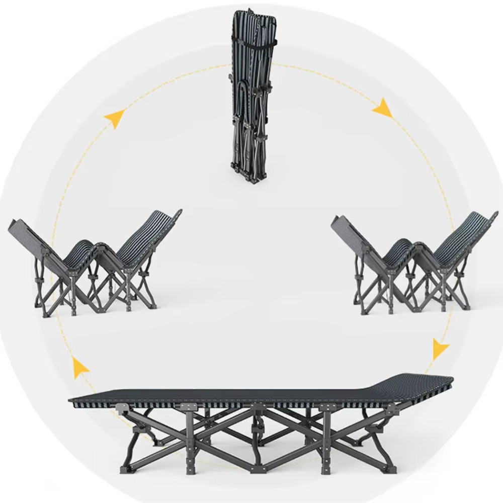 Портативна розкладачка доступна для сидіння, лежання та сну поставляється разом з чохлом в комплекті для зручного зберігання та транспортування. Використовується як розкладачка для дорослих, дітей, офісна розкладачка або гостьове ліжко в кімнаті, розкладний шезлонг для відпочинку на задньому дворі або на пляжі.