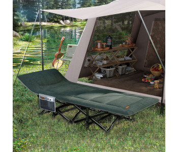 Легко розкладається та складається, ця розкладачка ідеально підходить для кемпінгу, походів та подорожей, надаючи вам можливість відпочити з максимальним комфортом у будь-якому місці. Х-подібна конструкція та 10 точок опори з вантажопідйомністю до 200 кг забезпечують надійність і стабільність, а інтегрована подушка зробить відпочинок ще більш приємним і комфортним.