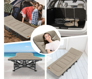 Легко розкладається та складається, ця розкладачка ідеально підходить для кемпінгу, походів та подорожей, надаючи вам можливість відпочити з максимальним комфортом у будь-якому місці. Х-подібна конструкція та 10 точок опори з вантажопідйомністю до 200 кг забезпечують надійність і стабільність, а інтегрована подушка зробить відпочинок ще більш приємним і комфортним.