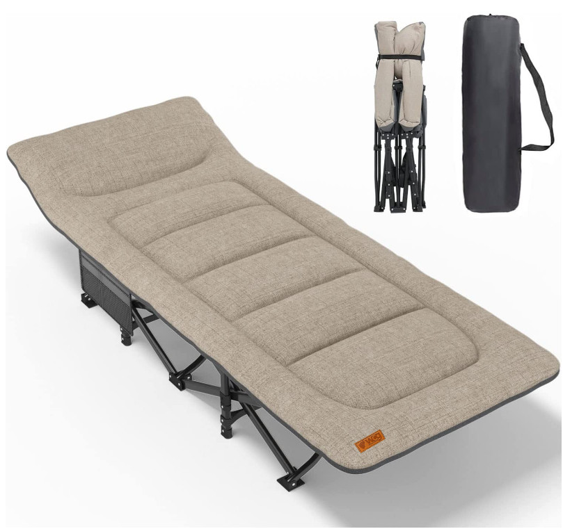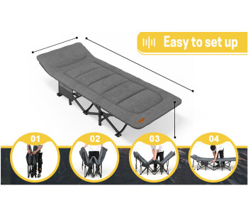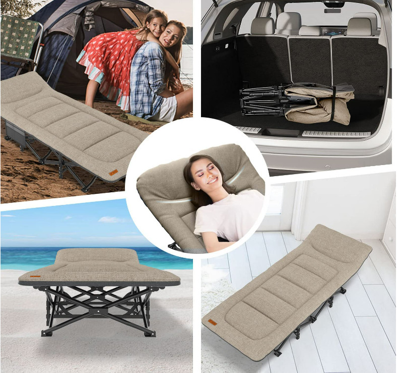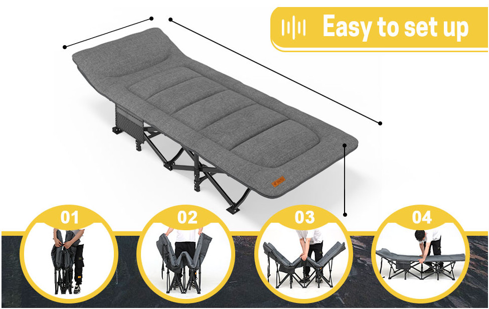 Портативна розкладачка доступна для сидіння, лежання та сну поставляється разом з чохлом в комплекті для зручного зберігання та транспортування. Використовується як розкладачка для дорослих, дітей, офісна розкладачка або гостьове ліжко в кімнаті, розкладний шезлонг для відпочинку на задньому дворі або на пляжі.