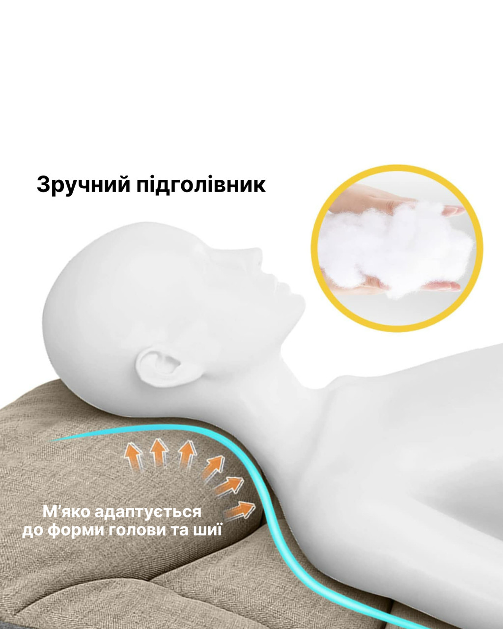 - Зручний підголовник: змінний кут нахилу верхньої частини дозволяє підібрати комфортне положення для фіксації голови