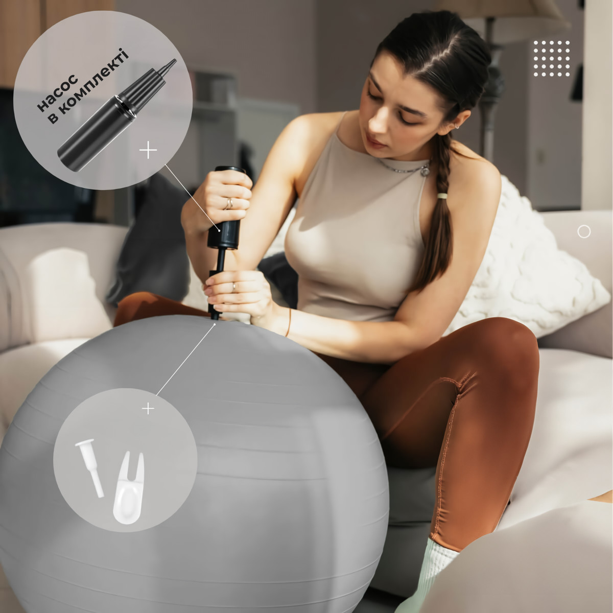 Фітбол або гімнастичний м'яч для фітнесу від українського бренду WCG виготовлений за передовими технологіями, надзвичайно стійкий до проколів та розривів , товщина стінки фітбола 2мм,витримує нагрузку 250 кг,відповідає всім нормам та вимогам для комерційного використання. Вправи з фітболом навантажують різні групи м'язів, а просте сидіння на фітболі під час роботи допоможе сформувати правильну поставу та зміцнити спину.