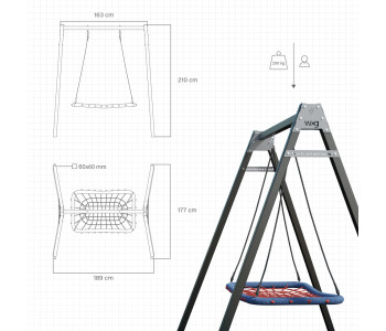 Одномісний Каркас для садової та дитячої гойдалки WCG 1 Elite Play Frame + Гойдалка гніздо Elips WCG 108 х 83 см