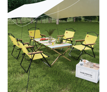 Шукаєте зручний розкладний стілець для відпочинку на природі? Модель WCG Chill у жовтому кольорі — це саме той варіант, що поєднує портативність, міцність і стиль. Завдяки компактній складаній конструкції ви легко візьмете його із собою на риболовлю, полювання, пікнік, дачу чи кемпінг. А вдома — це чудове рішення для балкону, саду чи тераси.