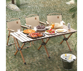 Легкий, але міцний алюмінієвий каркас забезпечує стійкість навіть на нерівній поверхні. Поверхня типу «гармошка» швидко розкладається, забезпечуючи зручну робочу площину для їжі, настільних ігор чи кулінарних пригод на природі.