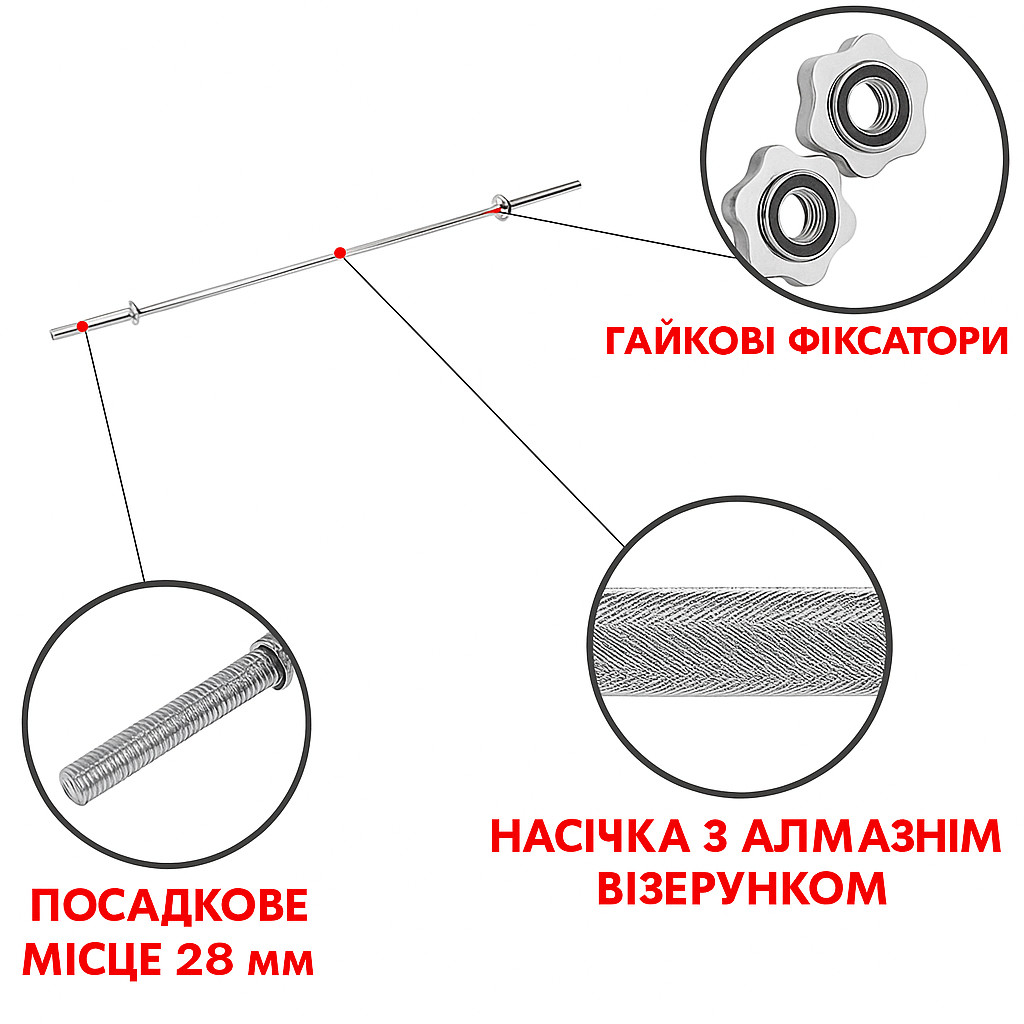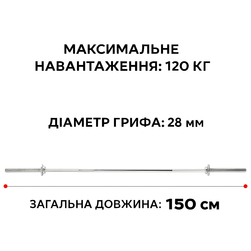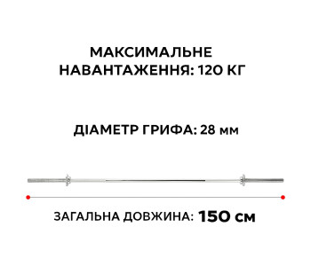 Гриф для штанги 150 см (28 мм) — універсальний снаряд для домашніх тренувань