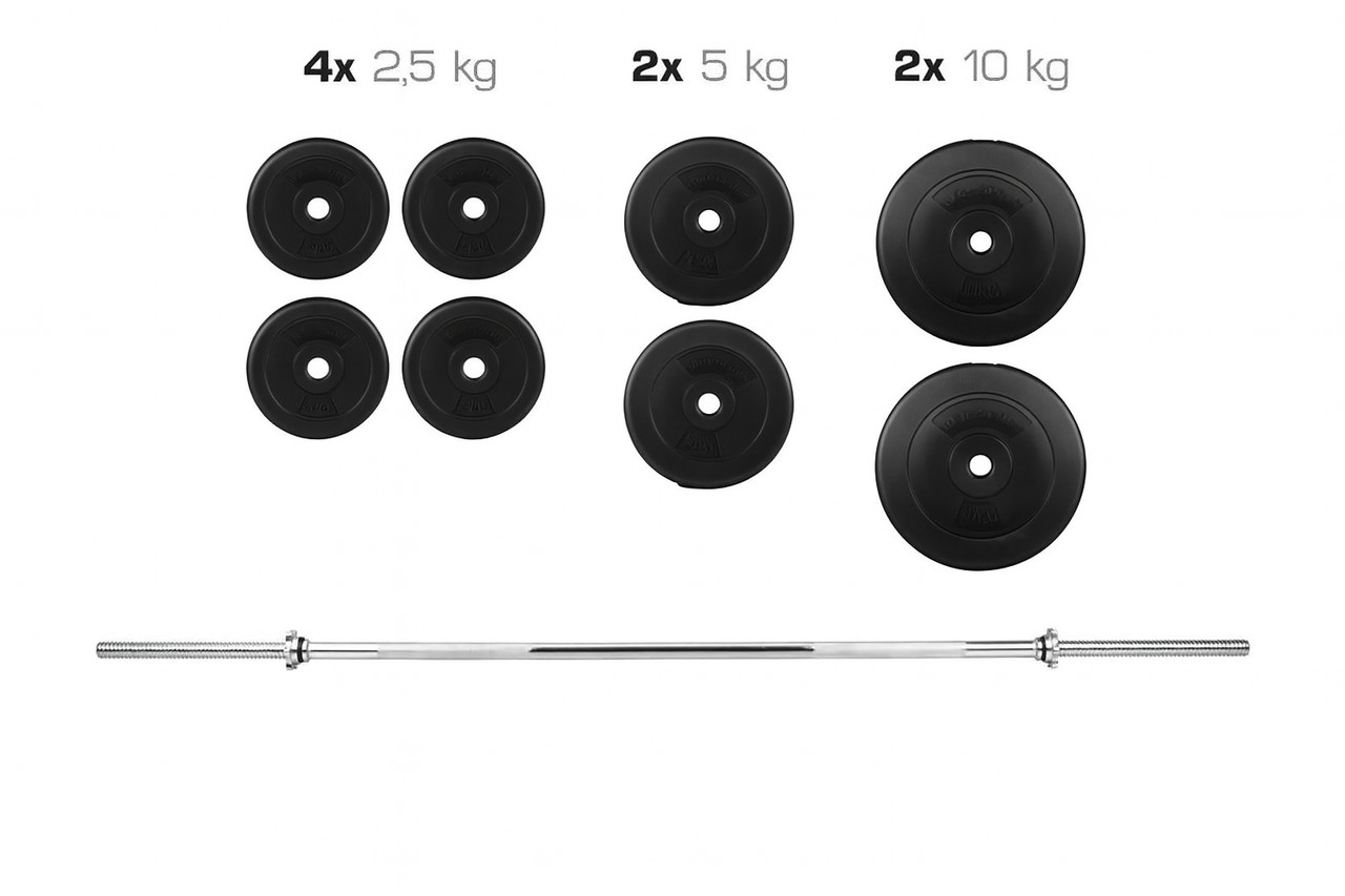 Штанга 47 кг з прямим грифом 150 см — універсальний набір для силових тренувань вдома та у спортзалі. Це готове рішення для розвитку сили й витривалості, яке дозволяє виконувати базові та ізоляційні вправи, замінюючи цілий ряд тренажерів.