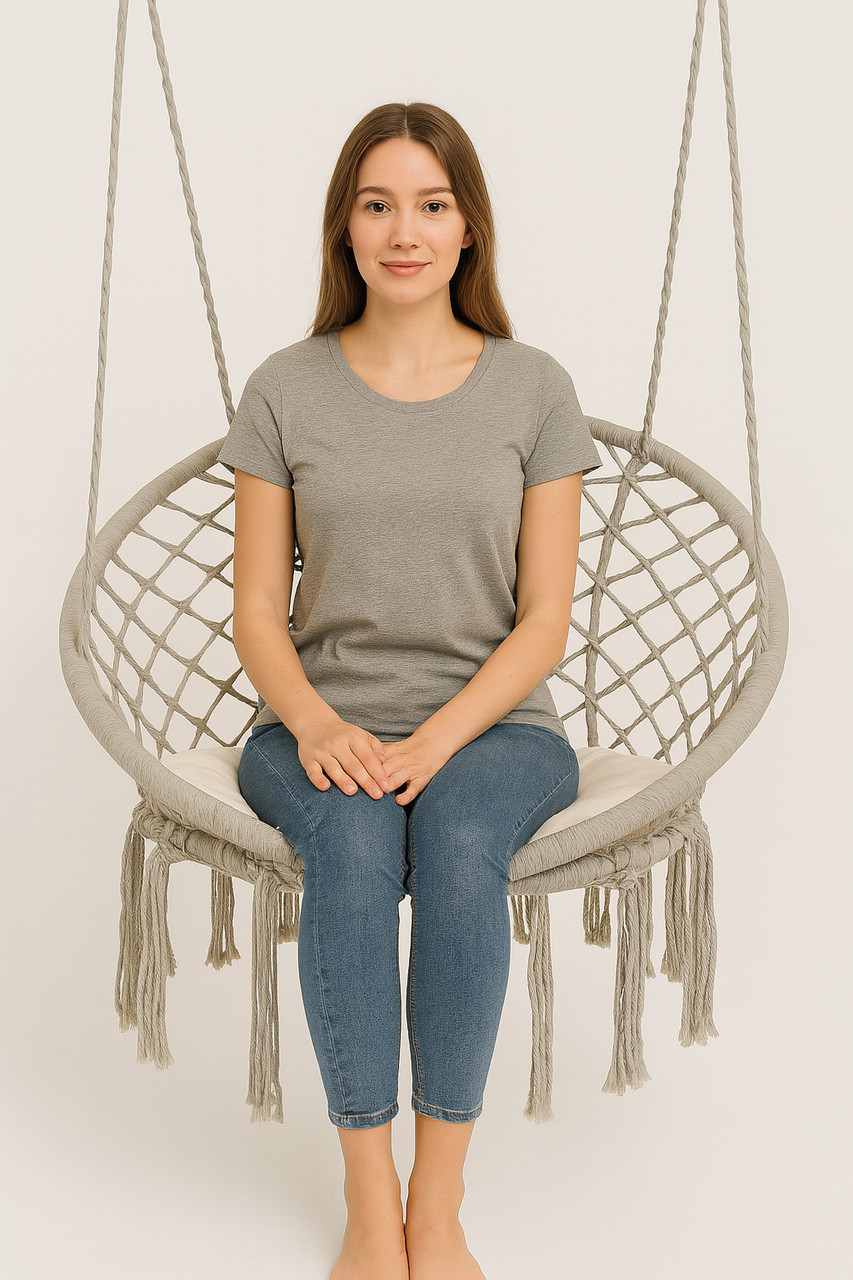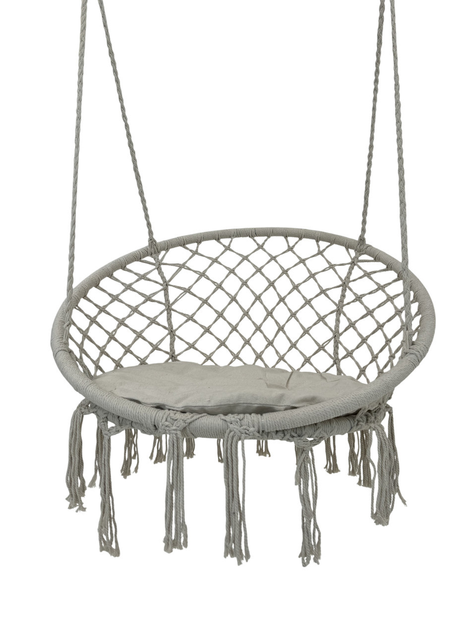 Головна > Товари для активного відпочинку > Товари для туризму > Меблі > Підвісне крісло-гойдалка 80 см Плетена кругла гойдалка WCG + м’яка подушка Біла (QNSW01WH)