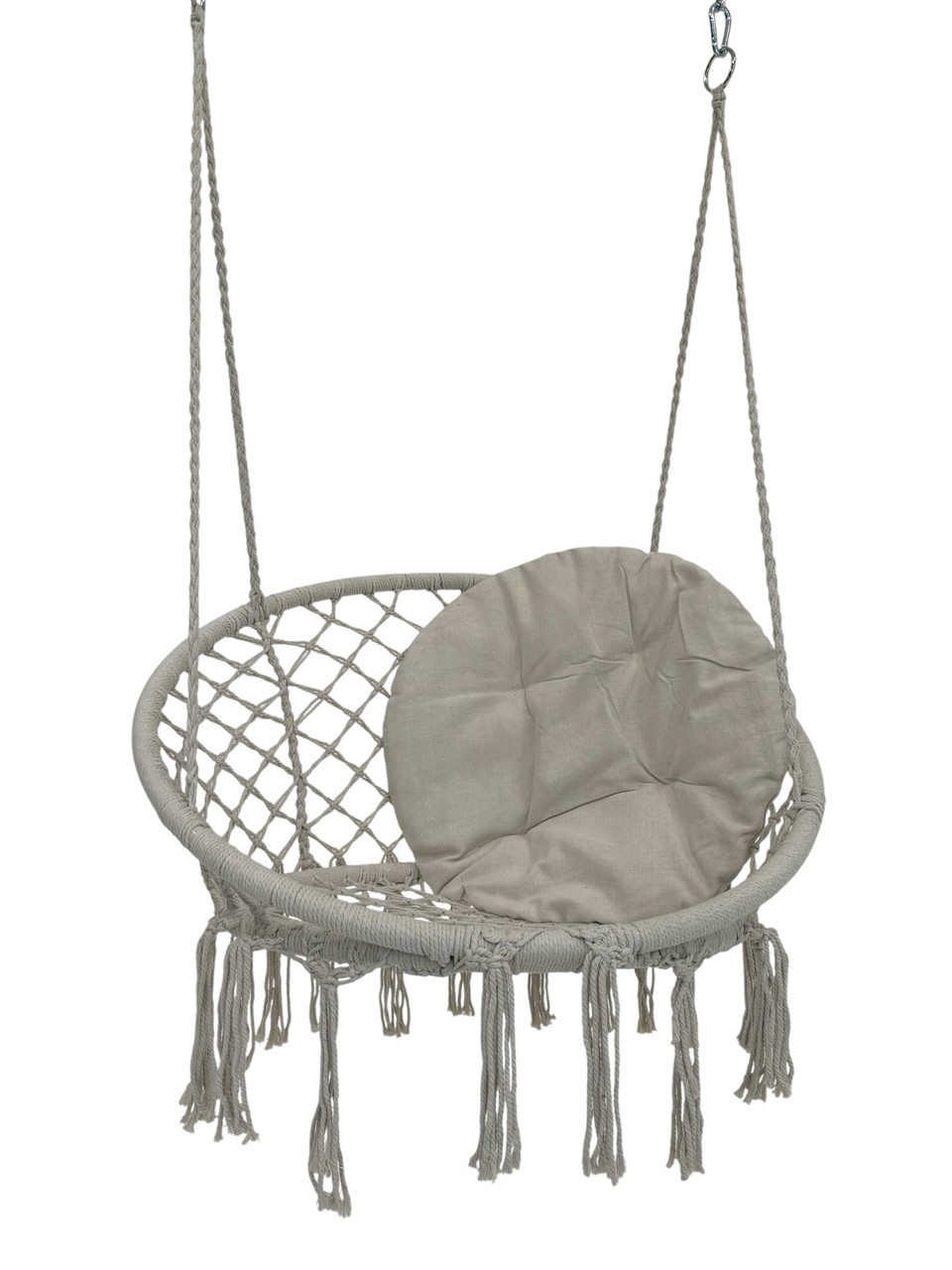 Підвісне крісло-гойдалка 80 см Плетена кругла гойдалка WCG + м’яка подушка Біла (QNSW01WH)