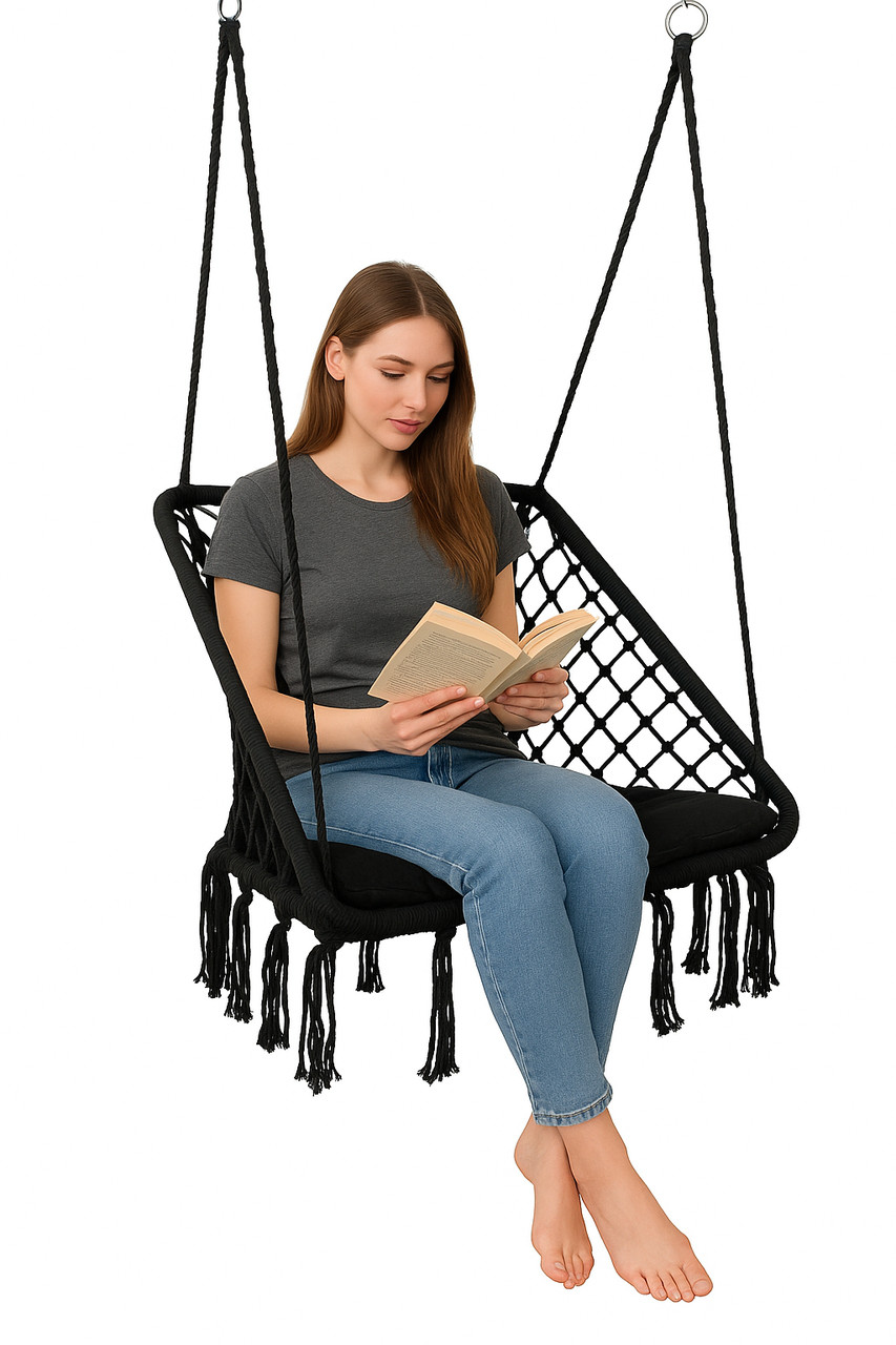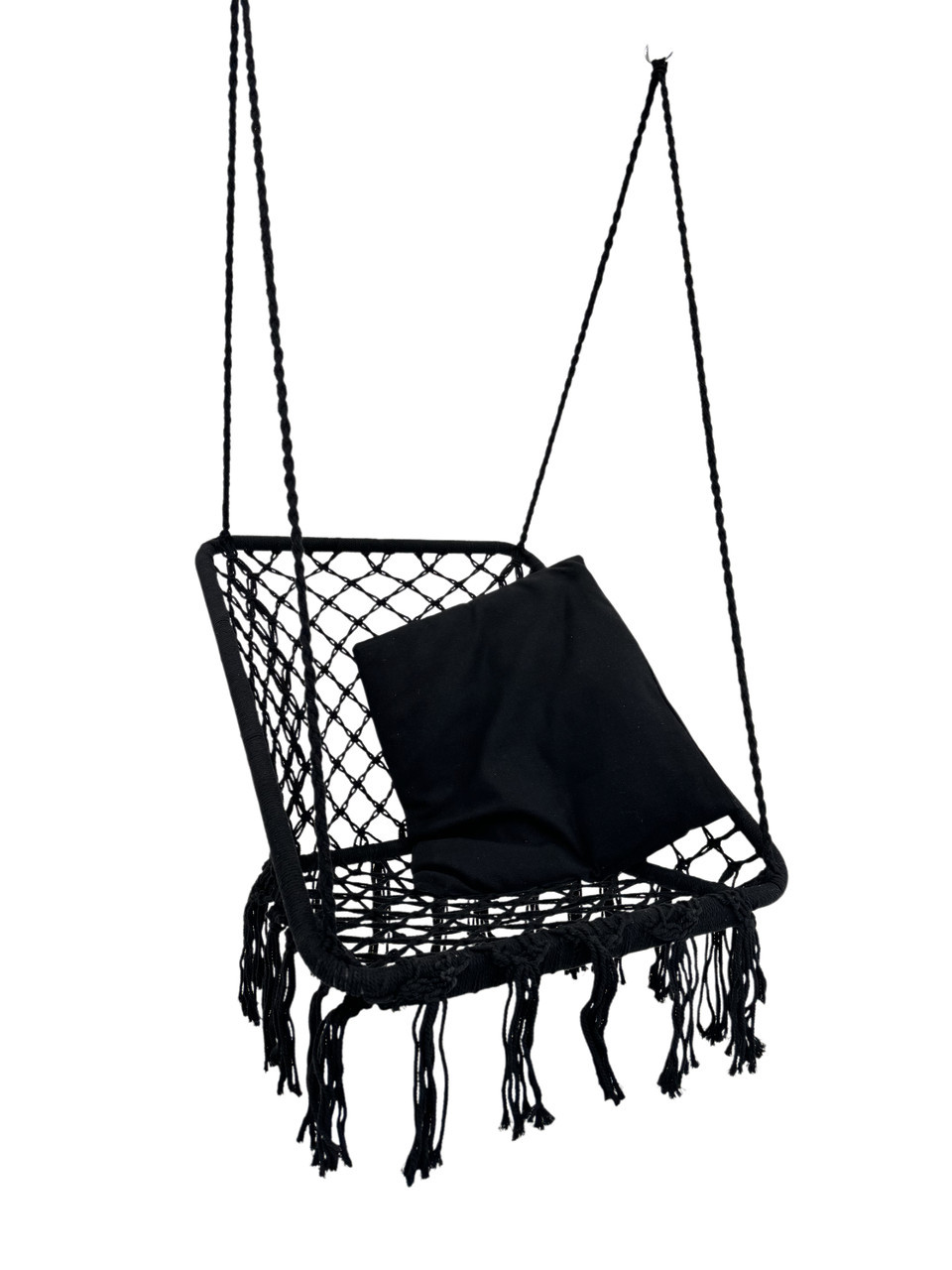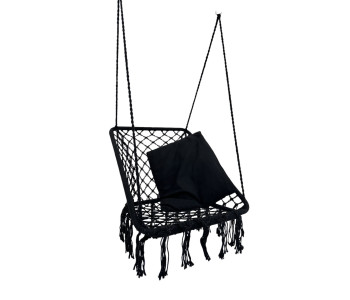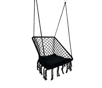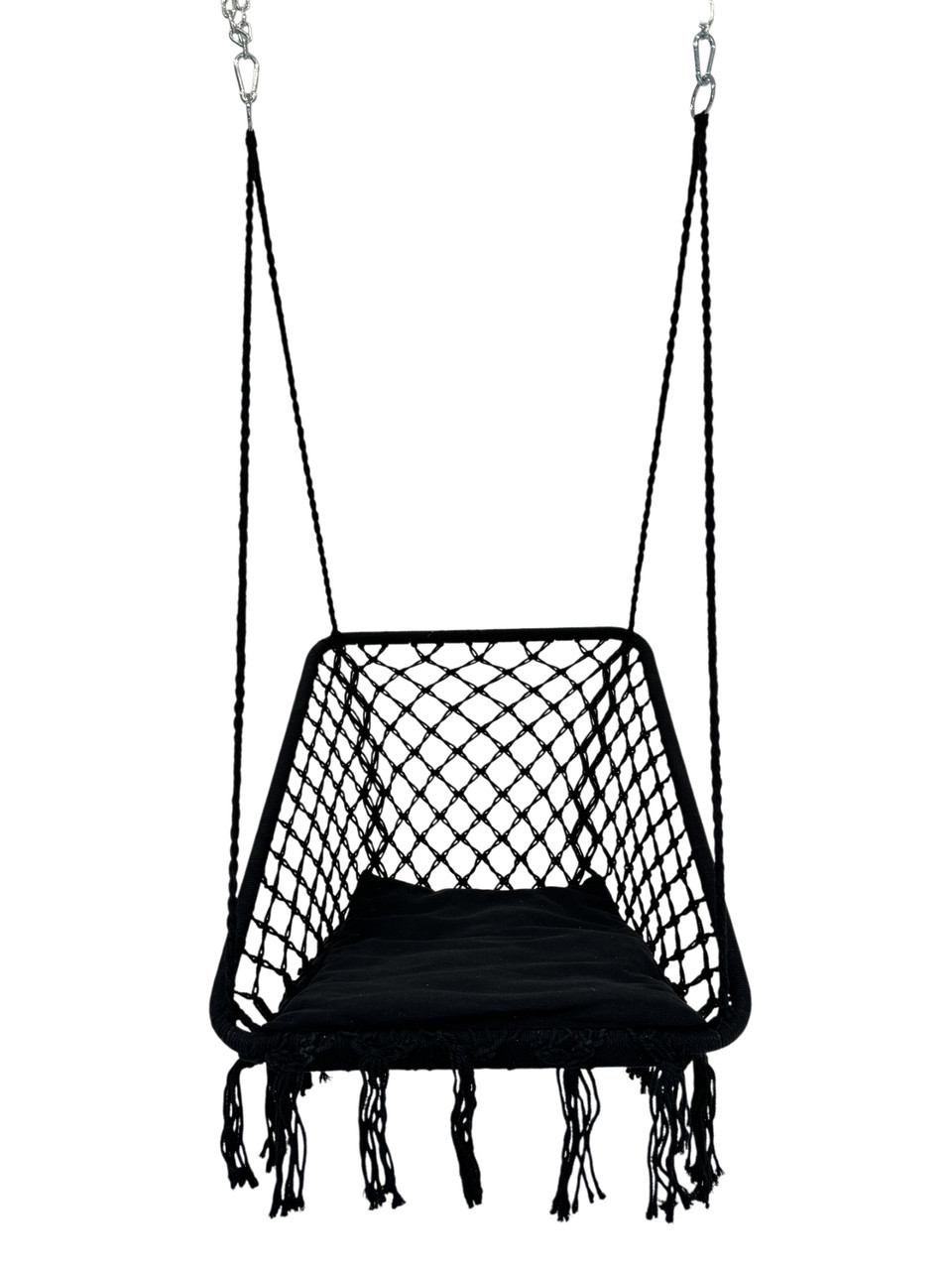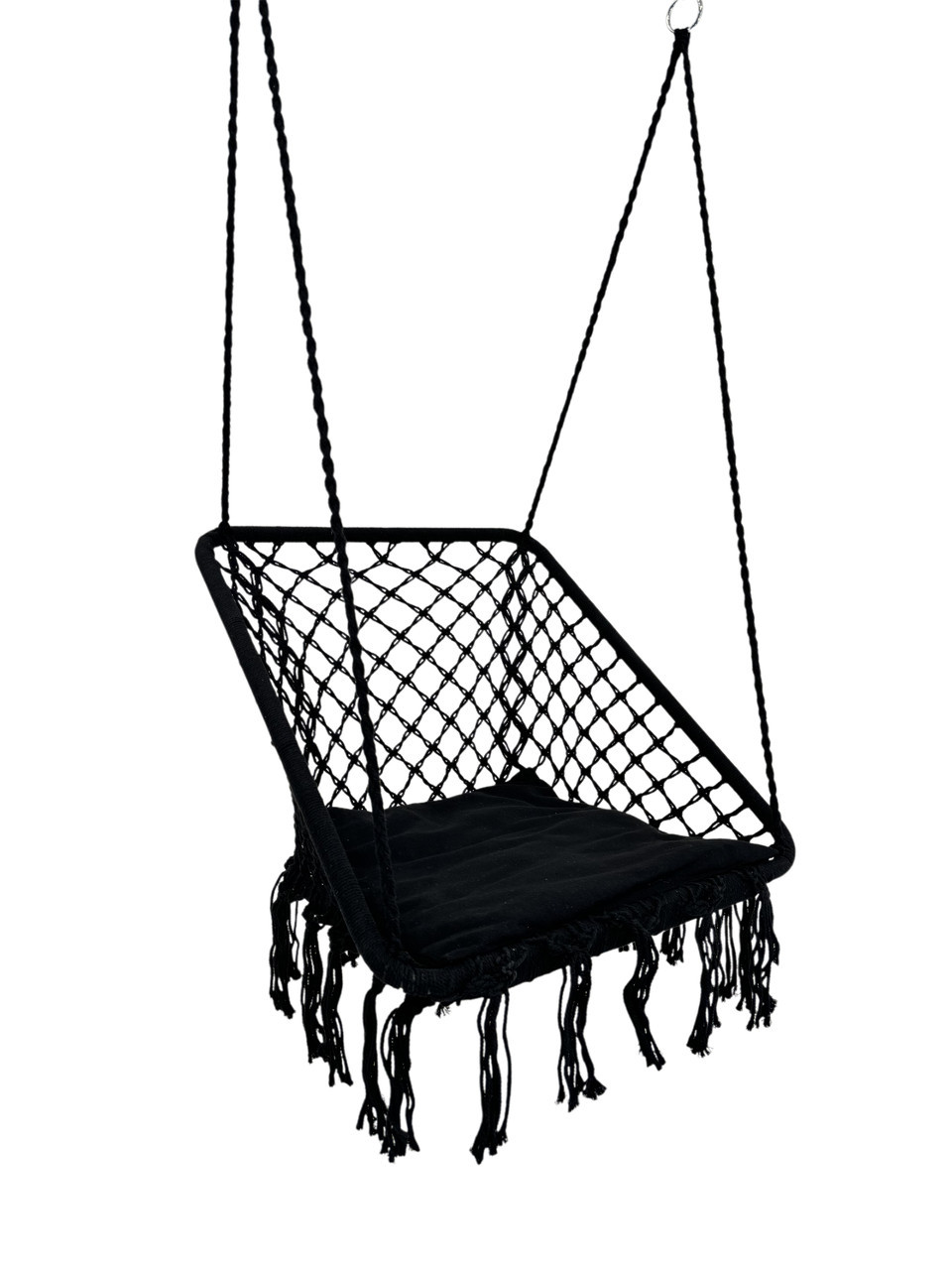 Крісло-гойдалка підвісна Плетена гойдалка квадратна WCG + м’яка подушка Чорна (QNSW03BL)