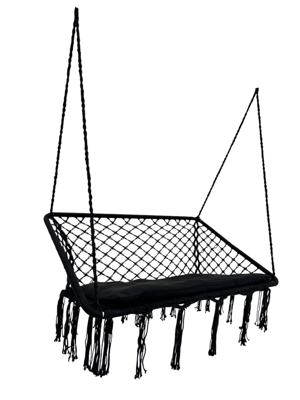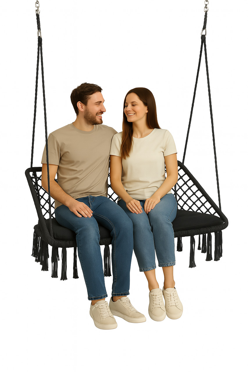 Широке двомісне сидіння (120 см) створене для справжнього релаксу — на самоті чи вдвох. Ви отримаєте не просто підвісне крісло, а стильний елемент декору, який прикрасить будь-який простір. У комплекті — м’яка подушка в тон крісла з наповнювачем (товщина 10 см), яка додає ще більше комфорту.