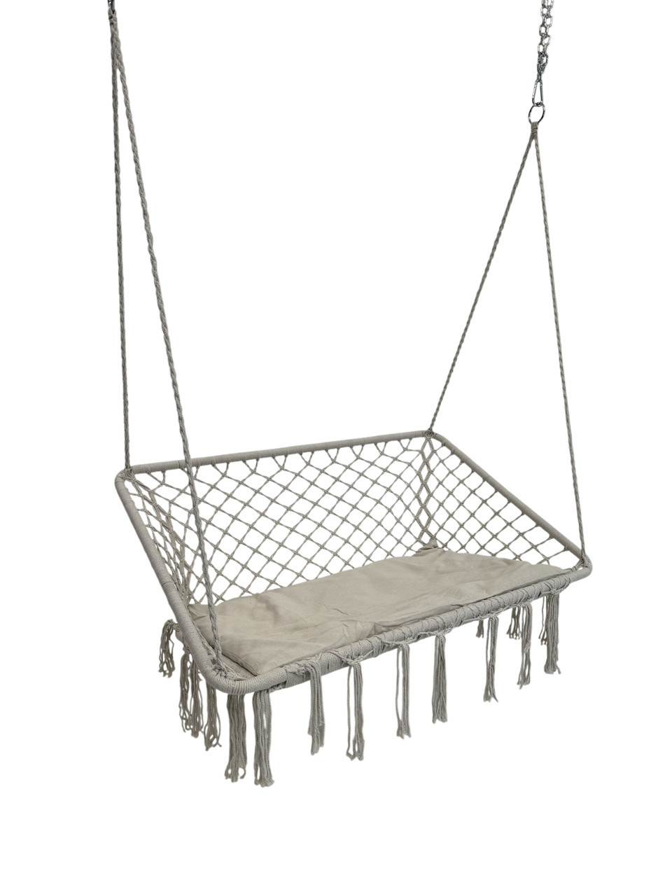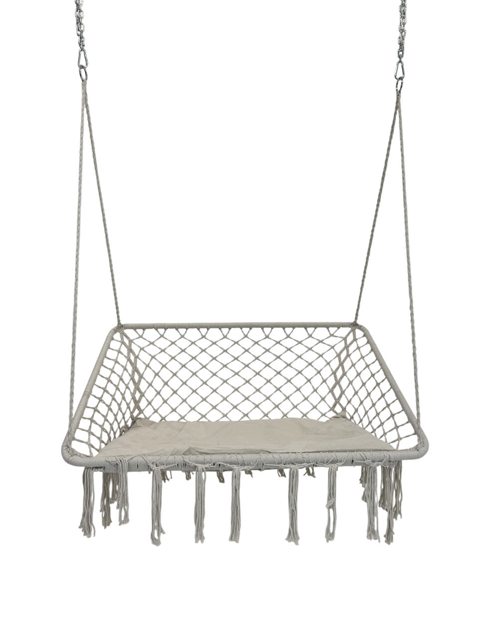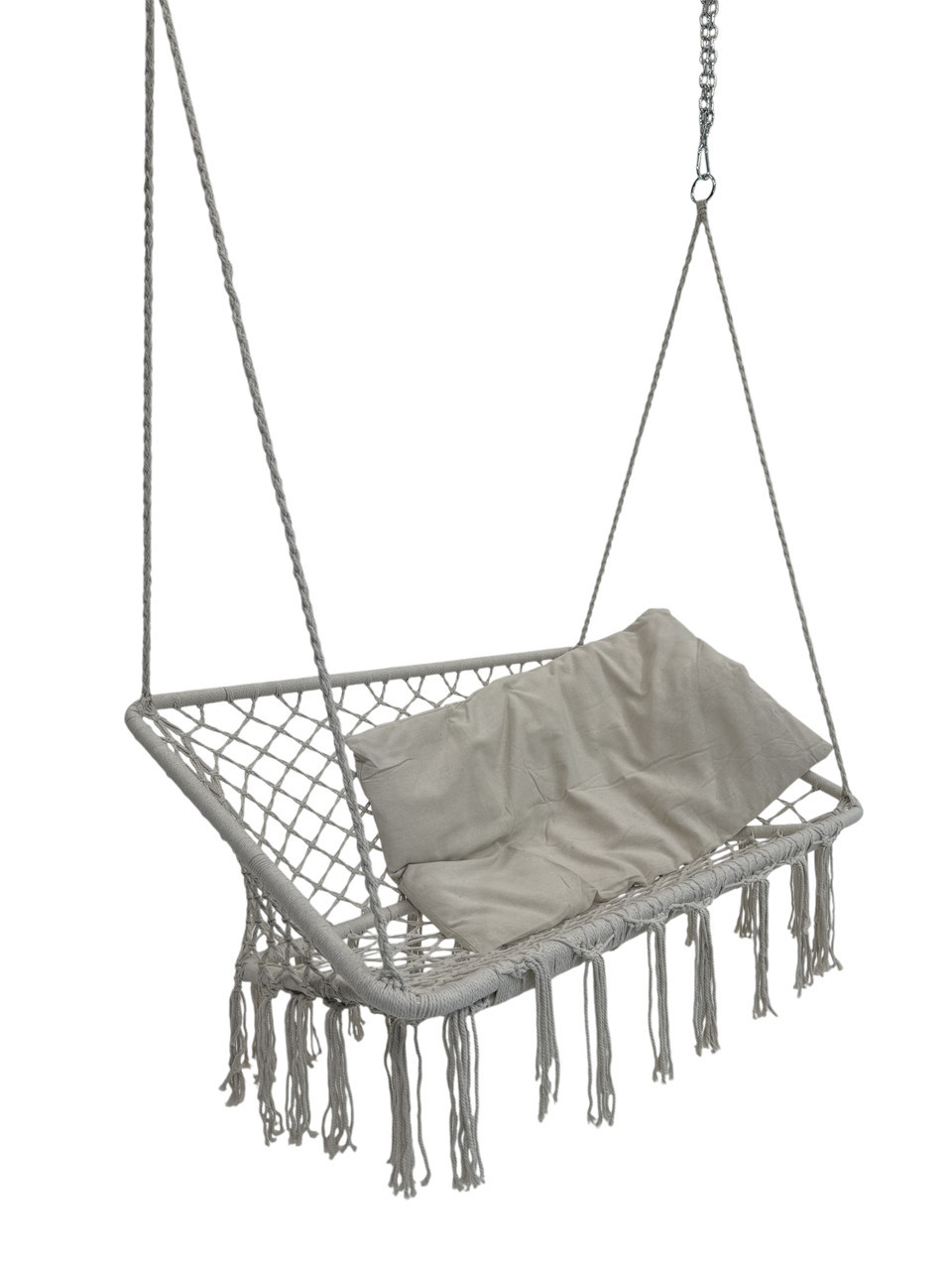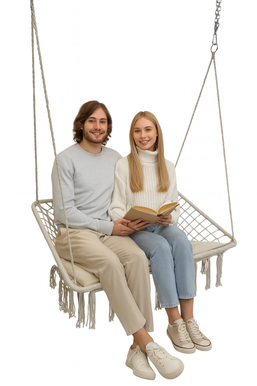 Головна > Товари для активного відпочинку > Товари для туризму > Меблі > Крісло-гойдалка підвісна Плетена гойдалка двомісна 120 см WCG + м’яка подушка Біла (QNSW09WH)