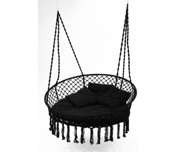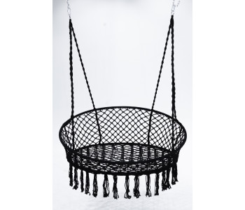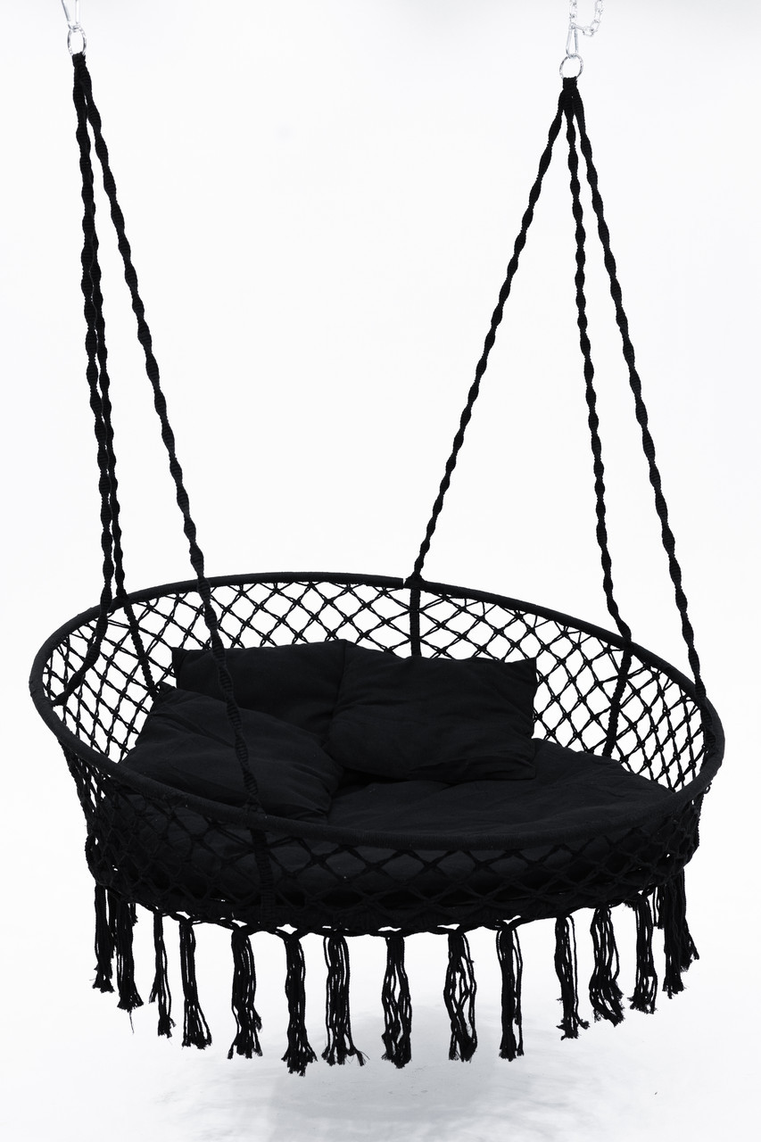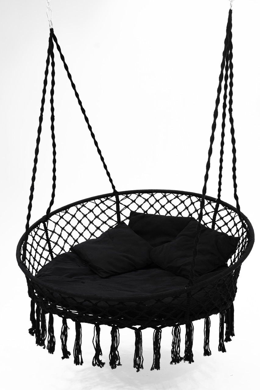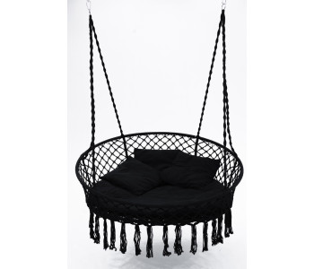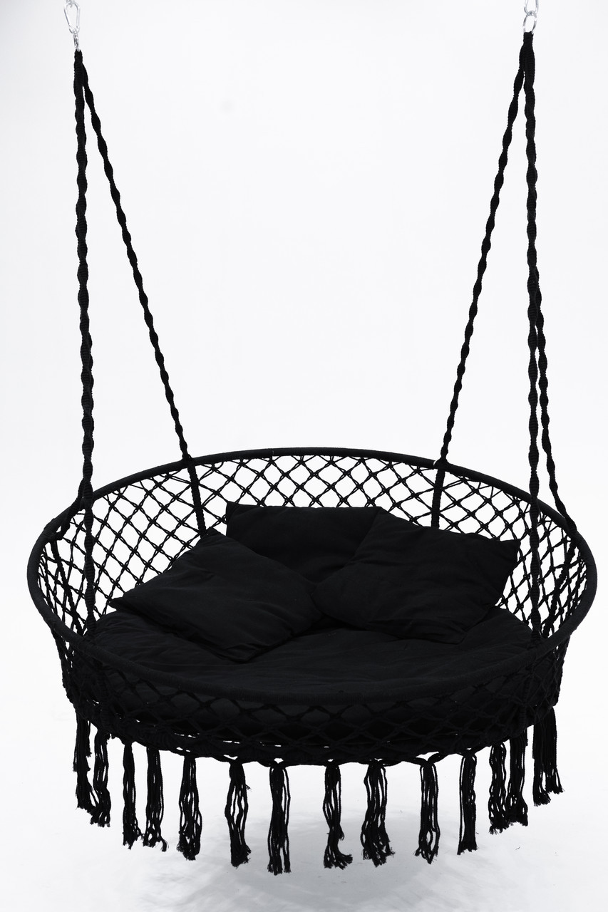 Крісло-гойдалка підвісна 140 см Велика плетена гойдалка кругла WCG + м’яка подушка Чорна (QNSW11BL)