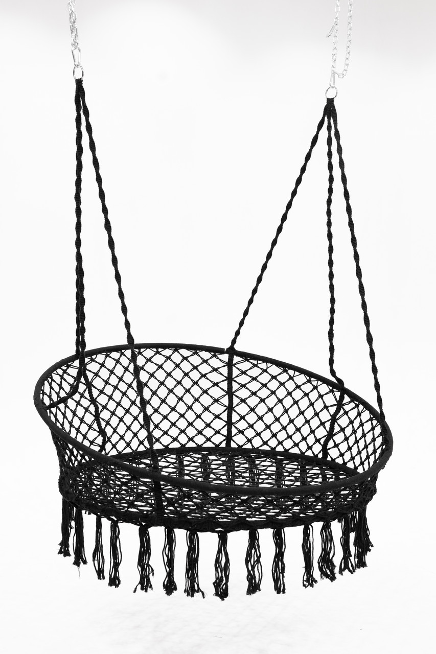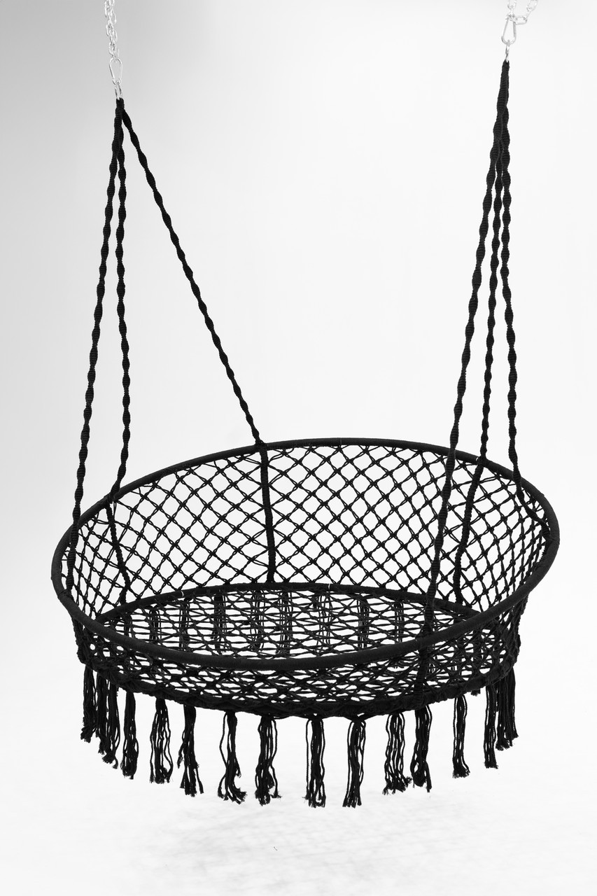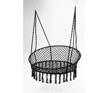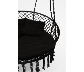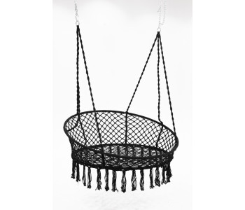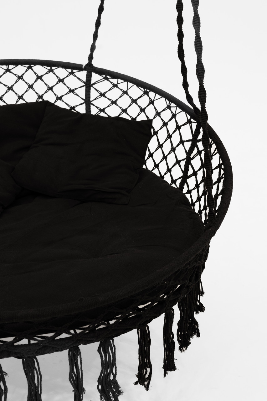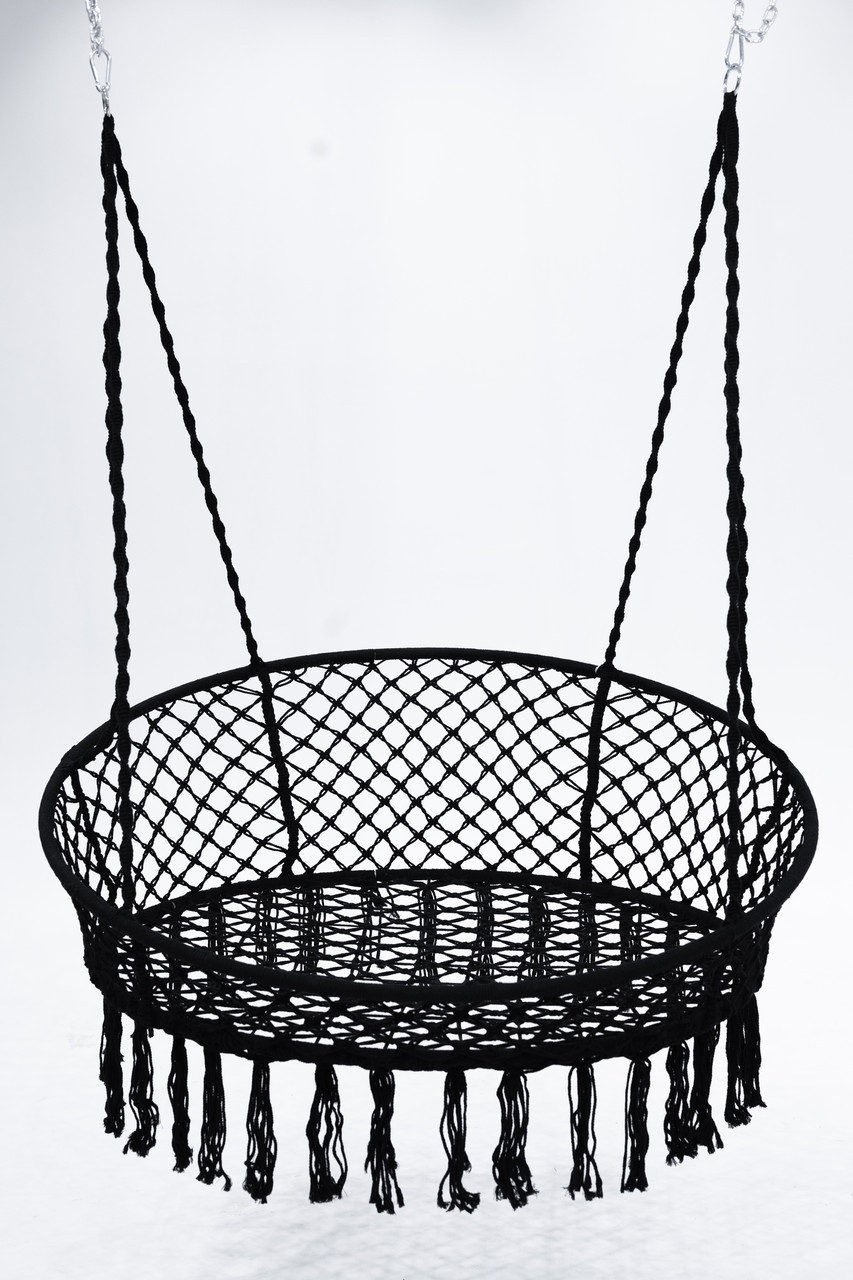 Крісло-гойдалка підвісна 140 см Велика плетена гойдалка кругла WCG + м’яка подушка Чорна (QNSW11BL)