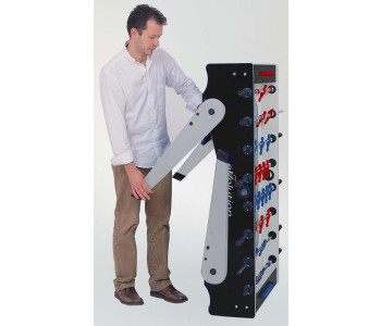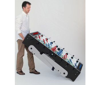 Настільний футбол Garlando Foldy Evolution Telescopic (FOLDYNERLVS) зі складаними ніжками для компактного зберігання - ідеальний варіант для невеликого приміщення. Міцна конструкція стола має елегантне поєднання чорного та сріблястого кольорів, натхненного стилем хай-тек. Модель виготовлена безпосередньо в Італії з високоякісних матеріалів, що забезпечують довговічність і задоволення від гри, з урахуванням конкретних вимог, яким повинен відповідати футбольний стіл. Цей стіл характеризується надійністю та стійкістю, що робить його придатним для гри в будь-якому місці: від дому до офісу та бару. Настільний футбол Garlando Foldy Evolution Telescopic (FOLDYNERLVS) відповідає європейським стандартам безпеки EN 71-1, 71-2, 71-3 та 71-9.