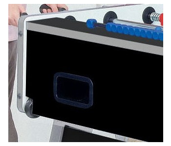 Ігрове поле із загартованого скла товщиною 5 мм. Білі лінії на зеленому тлі нанесені методом шовкографії, відтворюючи футбольне поле.