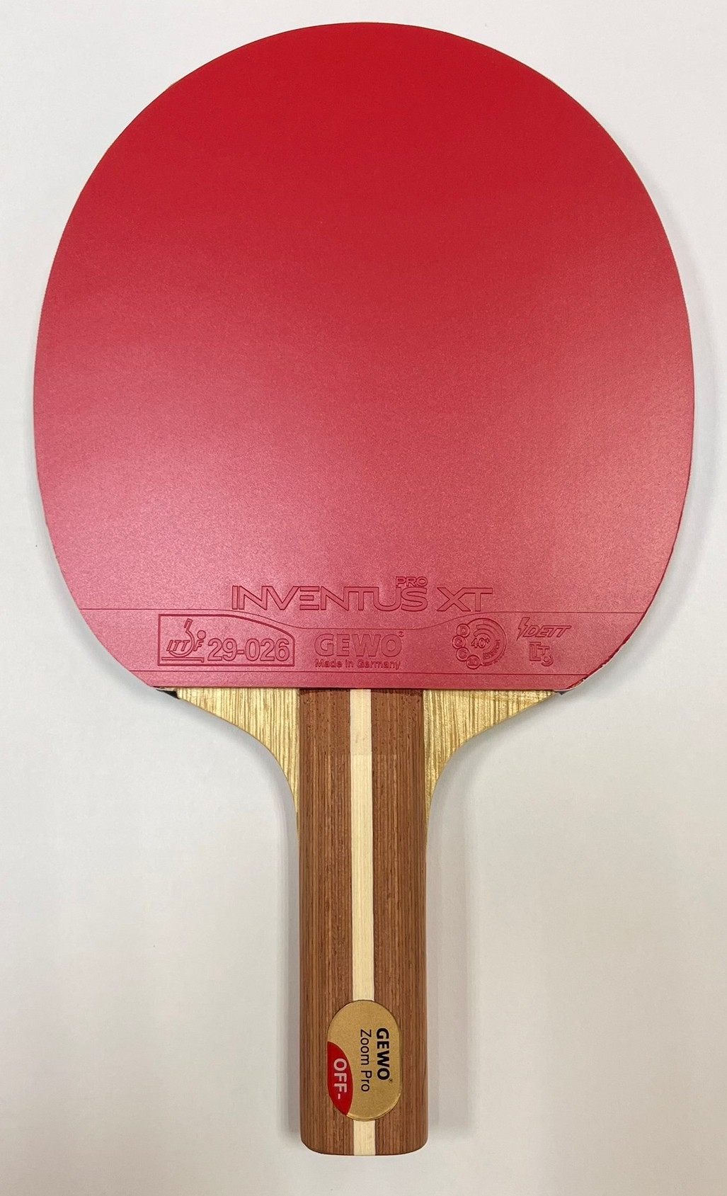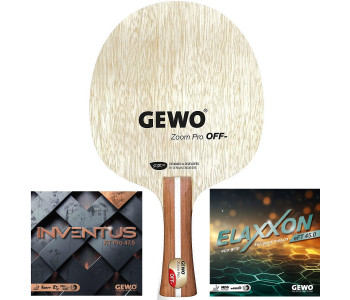 Ця попередньо зібрана ракетка для настільного тенісу складається з леза GEWO Zoom Pro OFF-, гуми GEWO Inventus XT Pro 47.5 та GEWO Elaxxon 45.0