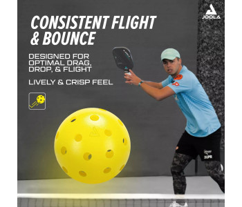 М'яч JOOLA Heleus Pickleball Ball встановлює нові стандарти в технології піклболу. За допомогою методичного тестування та практичної гри на майданчику для піклболу було оцінено десятки прототипів і зосереджено на трьох основних функціях: послідовний політ, стійкість і довговічність.