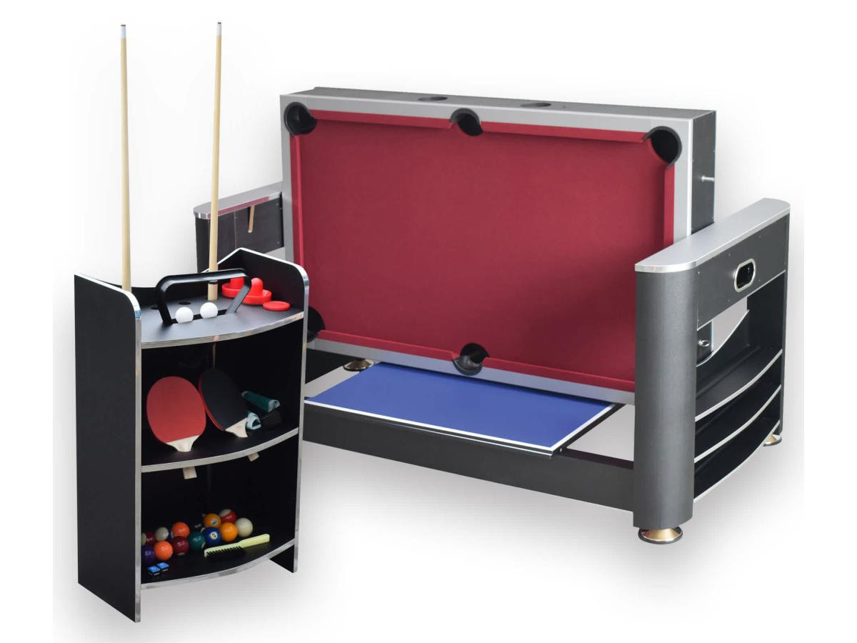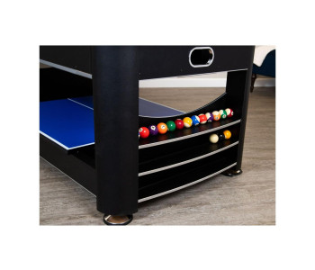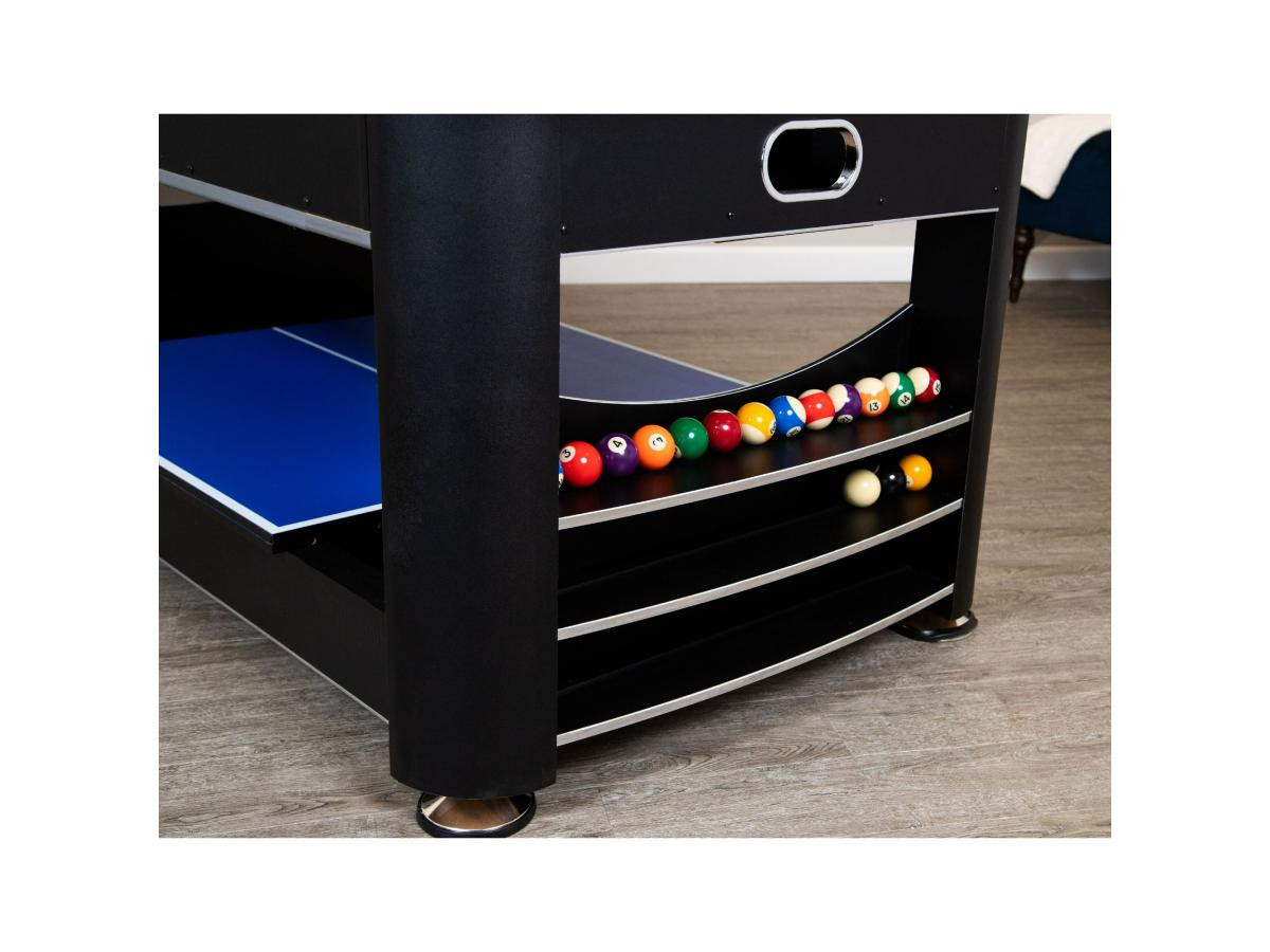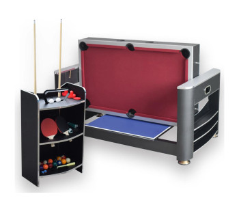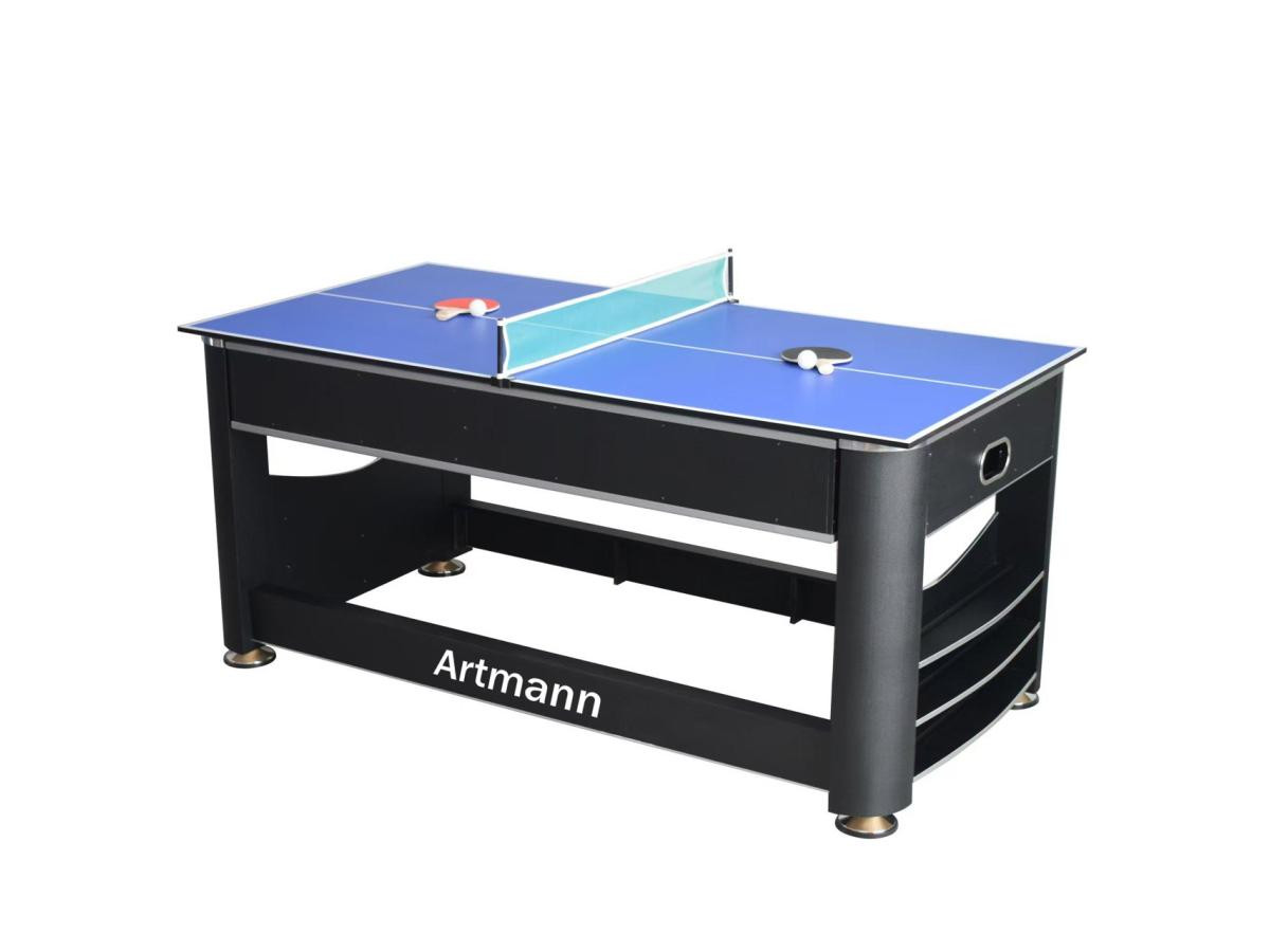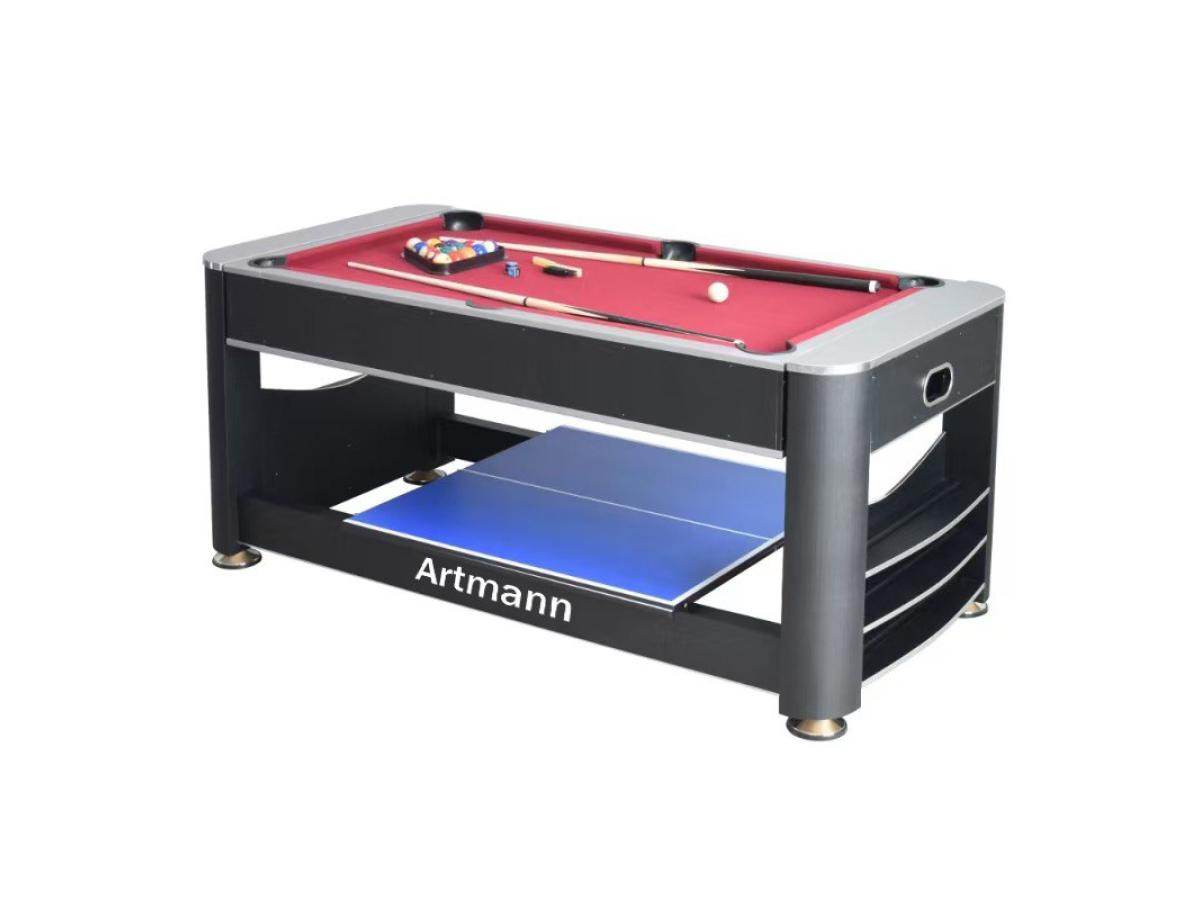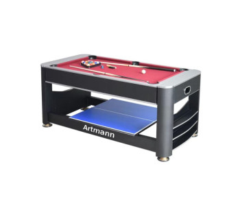 Перемикання між більярдом та аерохокеєм відбувається за допомогою простої обертової ігрової поверхні. Настільний теніс встановлюється зверху за допомогою знімної кришки з двох частин. Швидко, просто та надійно фіксується за допомогою з’єднувальних штифтів.