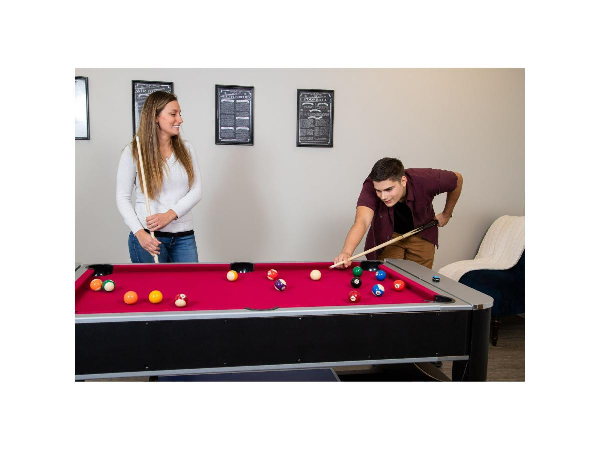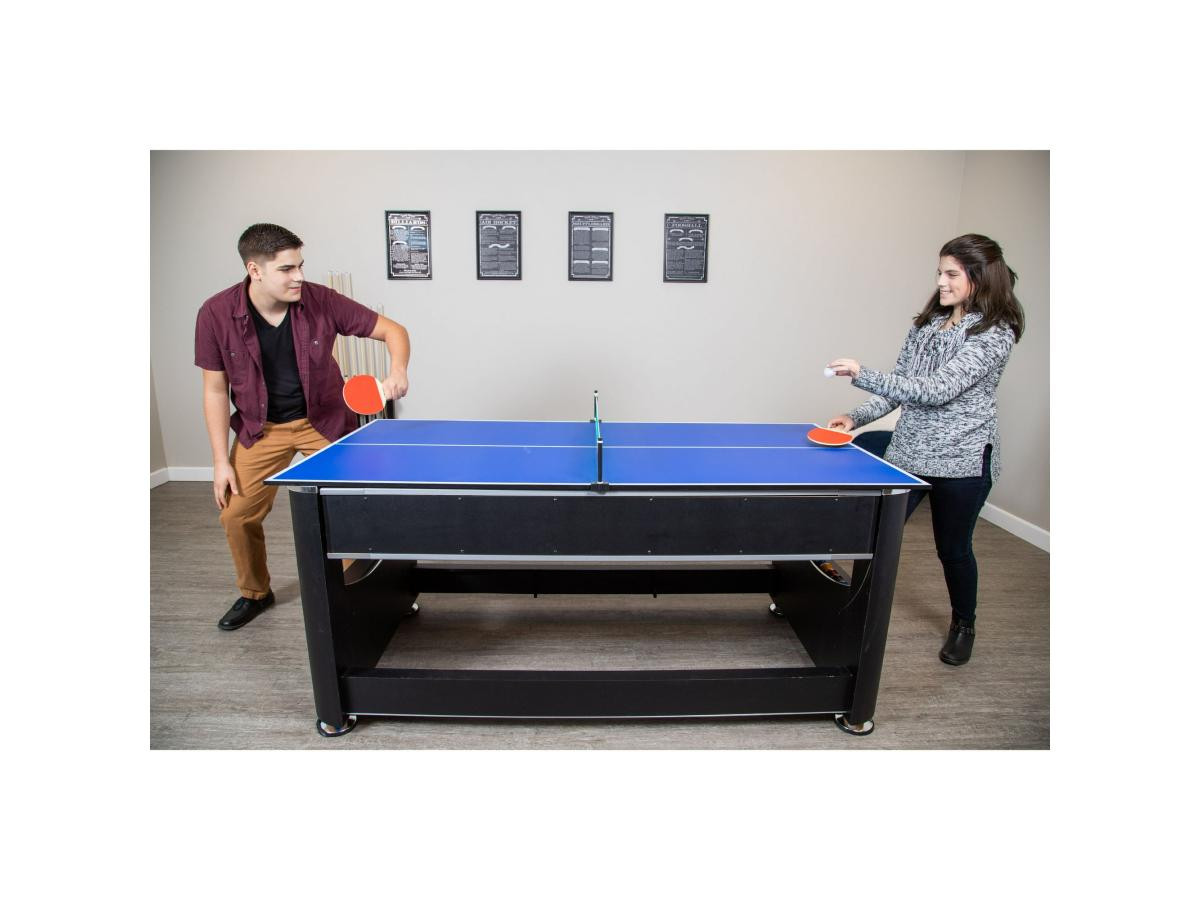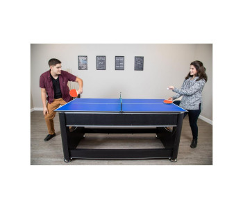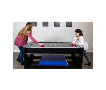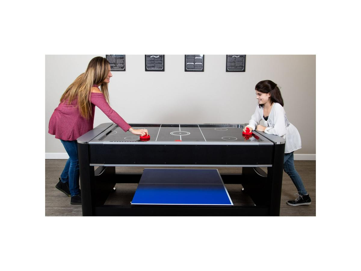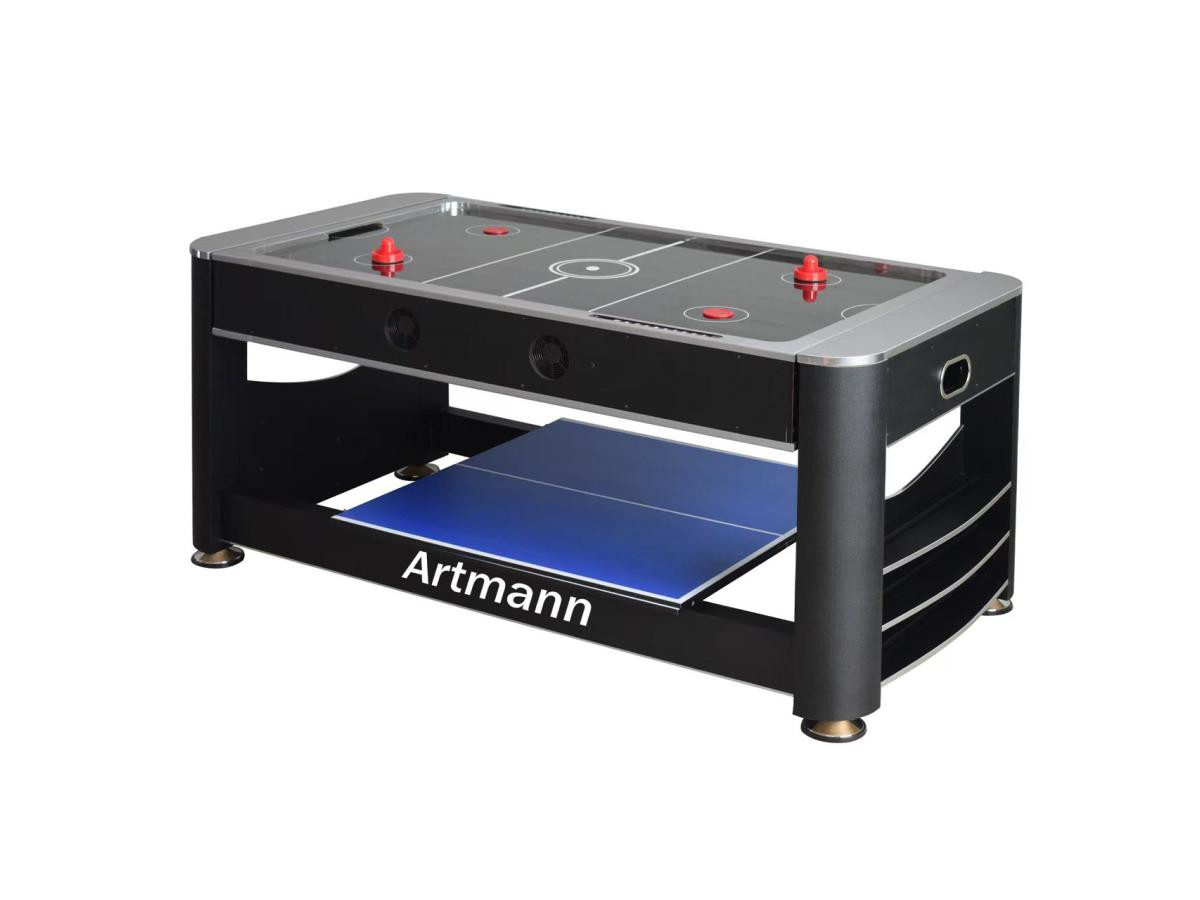 Перемикання між більярдом та аерохокеєм відбувається за допомогою простої обертової ігрової поверхні. Настільний теніс встановлюється зверху за допомогою знімної кришки з двох частин. Швидко, просто та надійно фіксується за допомогою з’єднувальних штифтів.