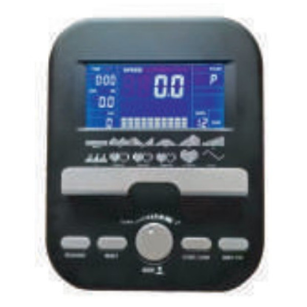 Тренажер має максимальну вагу користувача 140 кг, що свідчить про міцність рами. Вага маховика 6 кг у поєднанні з ремінною системою приводу забезпечує плавність. Комп'ютер має 12 вбудованих програм (P1-P12) та відображає основні показники (час, швидкість, дистанція, калорії, пульс).