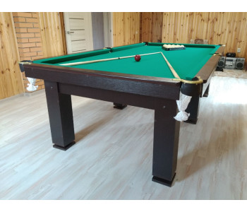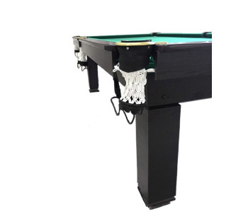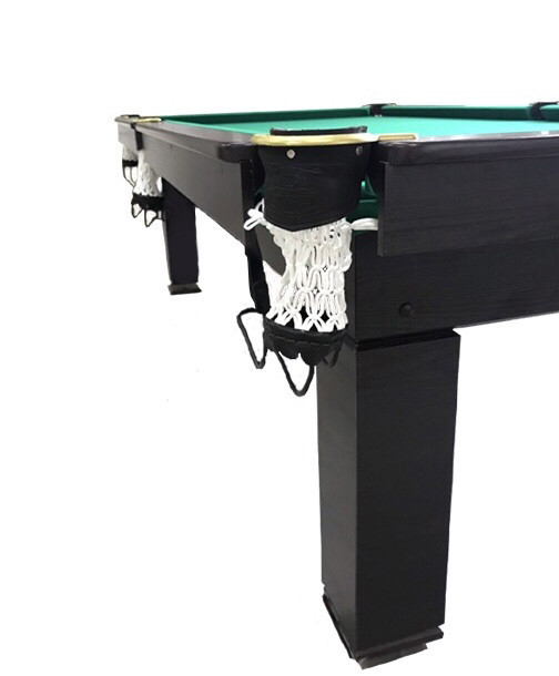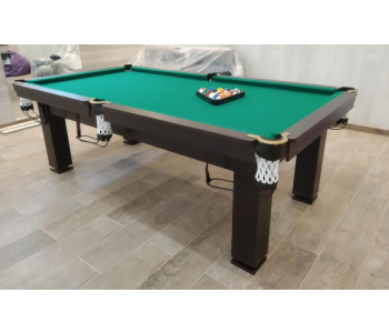 Стіл у кольорі «Горіх темний» з лузами з натуральної шкіри та сіткою-макраме чудово впишеться в інтер'єр. Невеликий розмір 6 футів (1,80 х 0,90 м) та невелика вага (90 кг) роблять його оптимальним для домашнього використання (необхідне приміщення: 4,80 х 3,90 м).