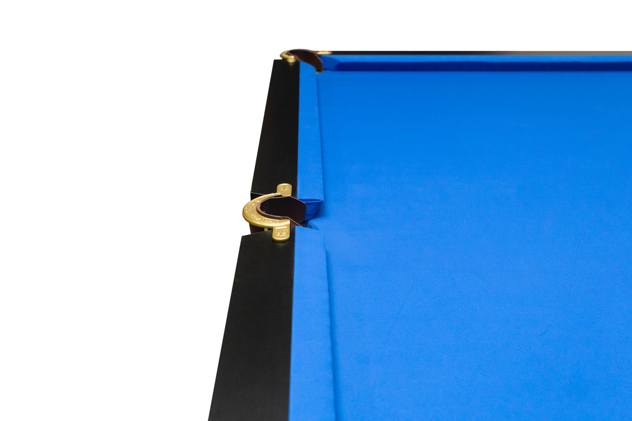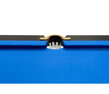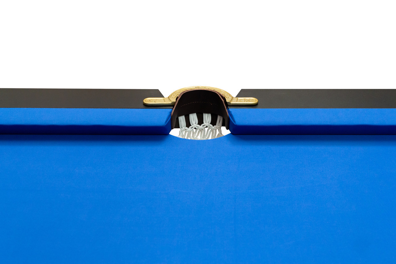 ✨ Елегантні лузи: Класичні більярдні лузи з сіткою-мішком та шкіряним фартухом, скоба із силуміну із золотистим відтінком, додають столу естетичності.