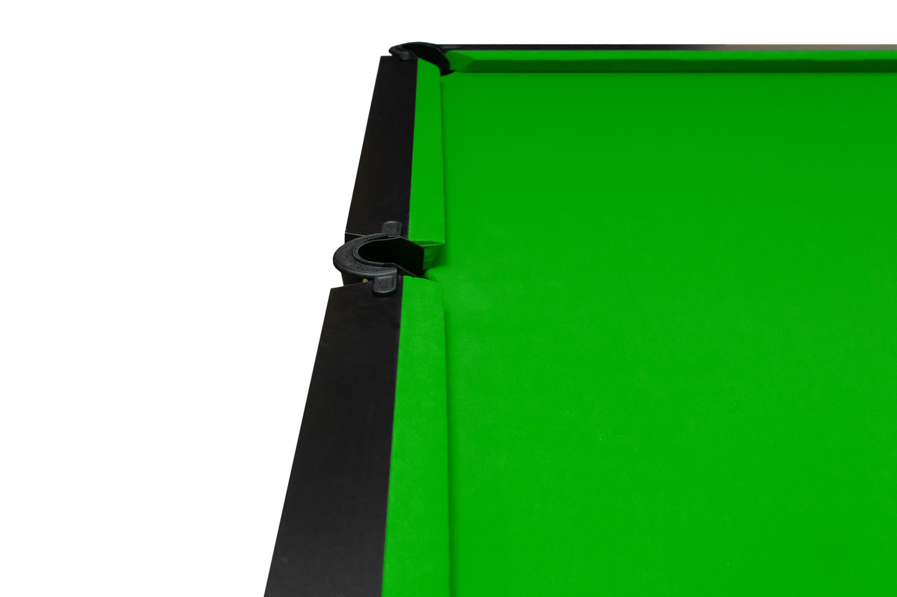 🟢 Якісне сукно: Ігрове поле покрите зносостійким сукном від турецького виробника Mirtex, що забезпечує ідеальний розкат куль.