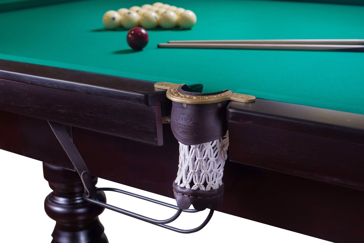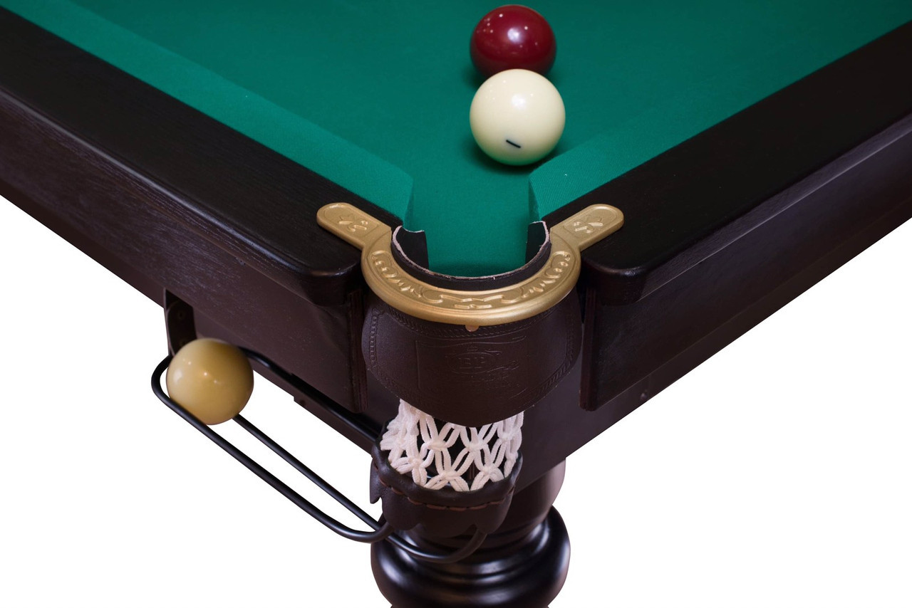 🎩 Професійні ігрові властивості: Правильна бортова гума, високоякісне сукно з Туреччини та продумані лузи (сітка зі шкіряним фартухом) — все це працює на вас, забезпечуючи відмінну якість гри. Цей стіл повністю відповідає вимогам професійного більярдного обладнання.