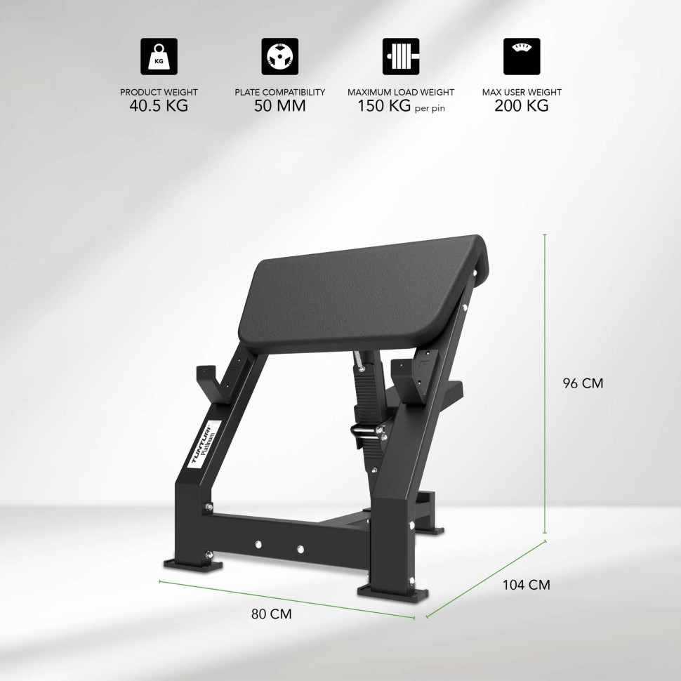 Рух Preacher Curl гарантує, що біцепс впорається з повним навантаженням, уникаючи зайвого навантаження на інші групи м'язів. Це забезпечує точний розвиток м'язів зі стабільними рухами.