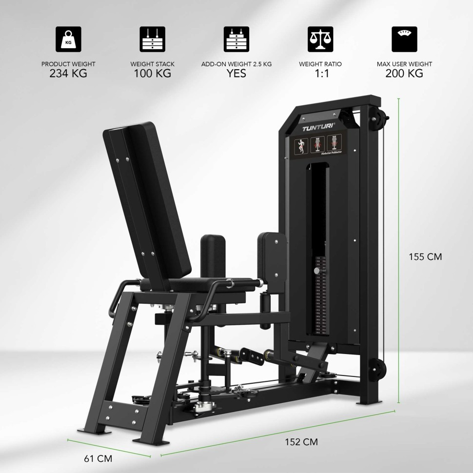 Шукаєте ефективне рішення 2-в-1 для внутрішньої та зовнішньої поверхні стегон? 🎯 Тренажер Tunturi Platinum Dual Abductor/Adductor (25PVS06000) — це професійне обладнання з вбудованим ваговим стеком, розроблений для зміцнення стабілізуючих м'язів стегна. Завдяки регульованому вихідному положенню (7 налаштувань) та плавному опору до 100 кг, він забезпечує оптимальний кут та ефективність тренування.