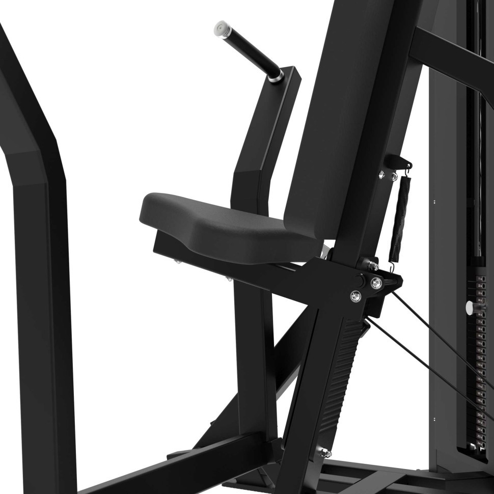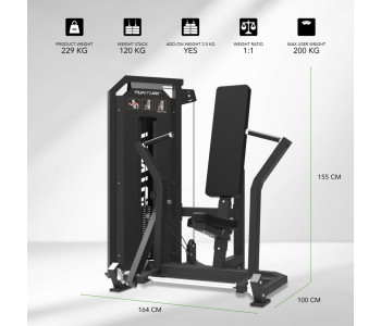 Тренажер забезпечує ефективну ізоляцію грудних м'язів, що дозволяє досягти максимального зростання і сили, імітуючи природний рух.