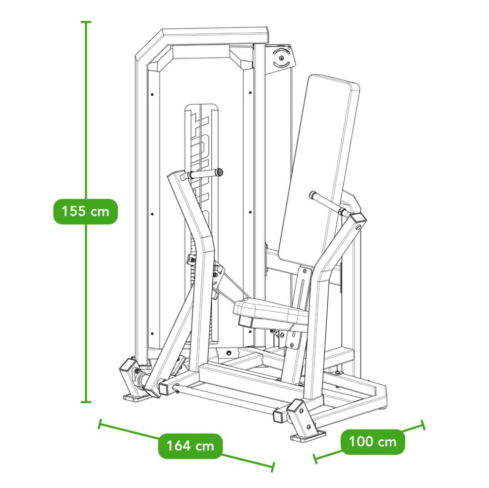 Ваговий стек до 120 кг з точними кроками для контрольованої прогресії. Перенесення ваги 1:1 забезпечує максимальний розвиток сили та повний контроль над вагою.