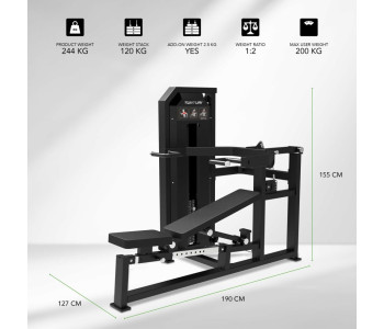 Ваговий стек до 120 кг та співвідношення передачі ваги 1:2 забезпечують потужний, але контрольований опір, ідеально підходящий для силових тренувань та росту м'язів.