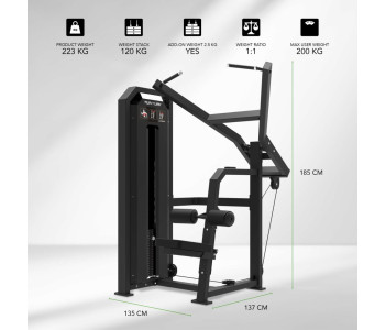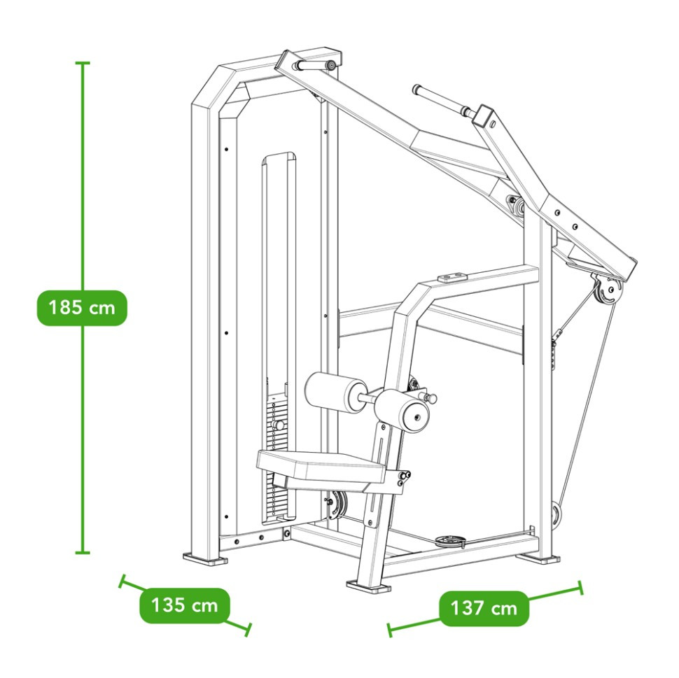 Станок ефективно ізолює найширші м'язи спини (latissimus dorsi), сприяючи росту, силі та покращенню загальної постави.