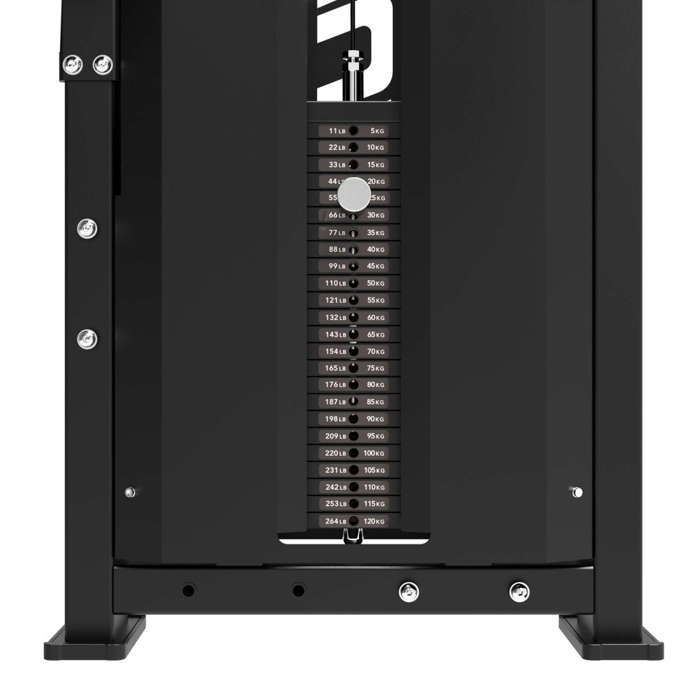 Ваговий стек до 120 кг з прямим співвідношенням ваги 1:1 забезпечує максимальний та точний контроль сили. Можливість використання для абсолютної точності прогресії.