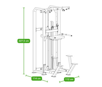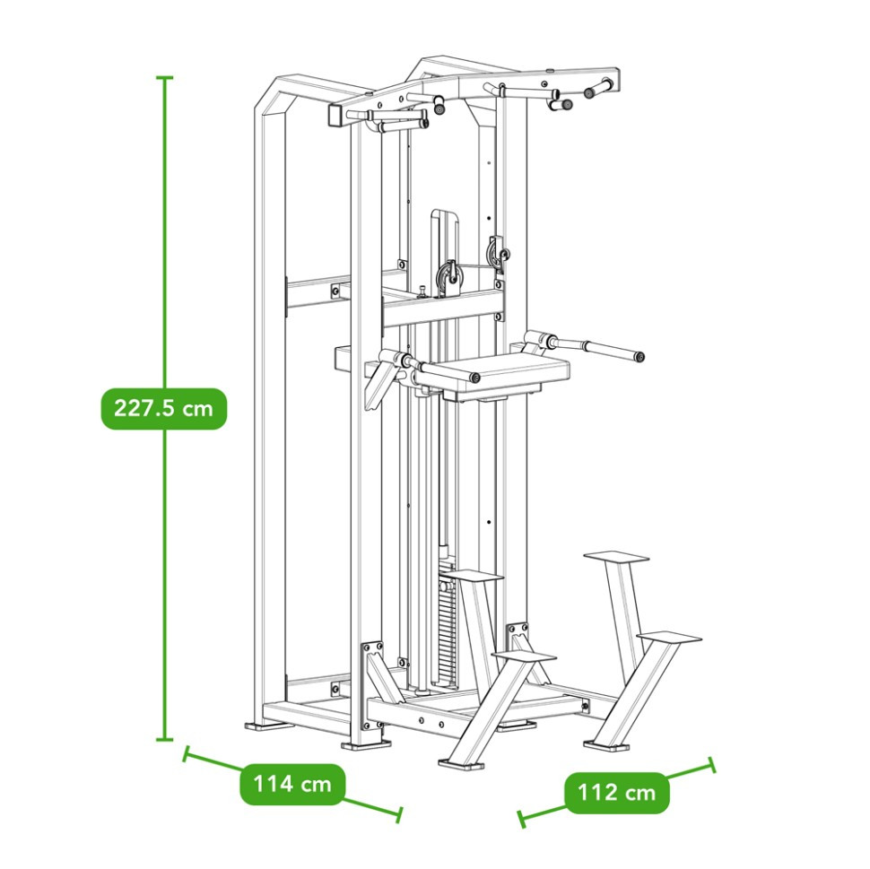 Ваговий стек 100 кг працює як противага (допомога). Чим більша вага стека, тим легше виконувати вправу, що дозволяє контролювати прогресію як новачкам, так і досвідченим користувачам.