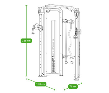 Оснащений двома незалежними ваговими стеками по 100 кг кожен, що дозволяє виконувати різнобічні та збалансовані тренування, а також працювати удвох.