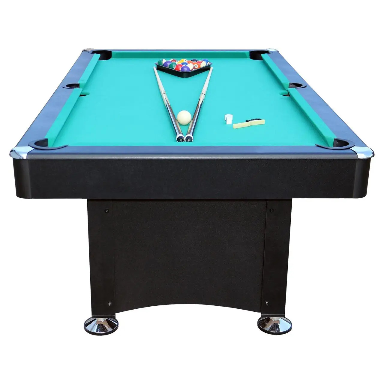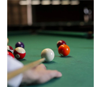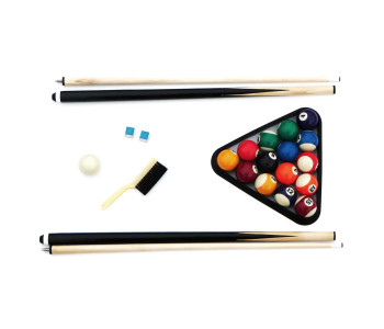Вам не доведеться нічого докуповувати! Стіл постачається з повним комплектом для гри: кулі (діаметр 57 мм), два киї (145 см), трикутник, крейда та щітка.