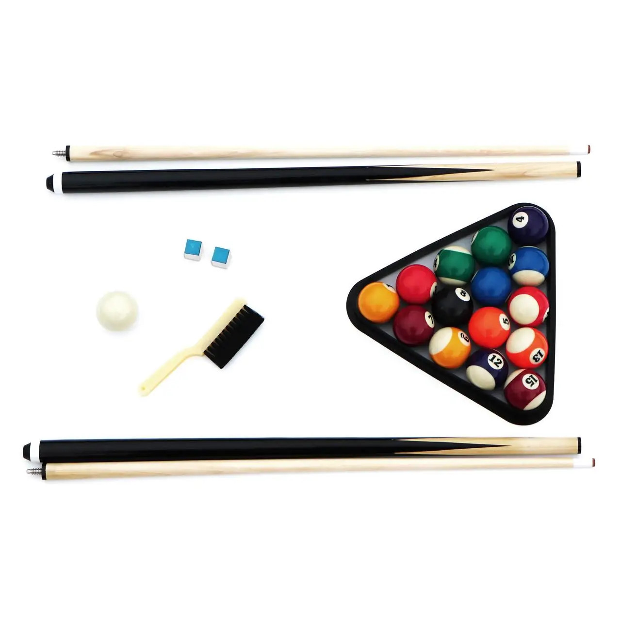 🛠️ Повний Комплект Аксесуарів: Кулі, киї, трикутник, крейда та щітка — все включено для старту без зволікань.