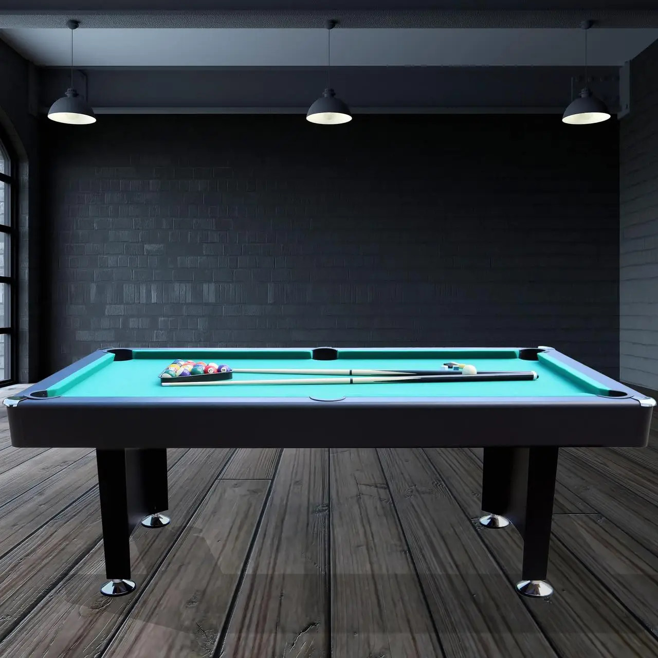 Суворий чорний корпус та яскраве зелене сукно створюють класичний та стильний вигляд, який ідеально прикрасить будь-яку кімнату або ігрову зону, привносячи в неї атмосферу преміум-клубу.