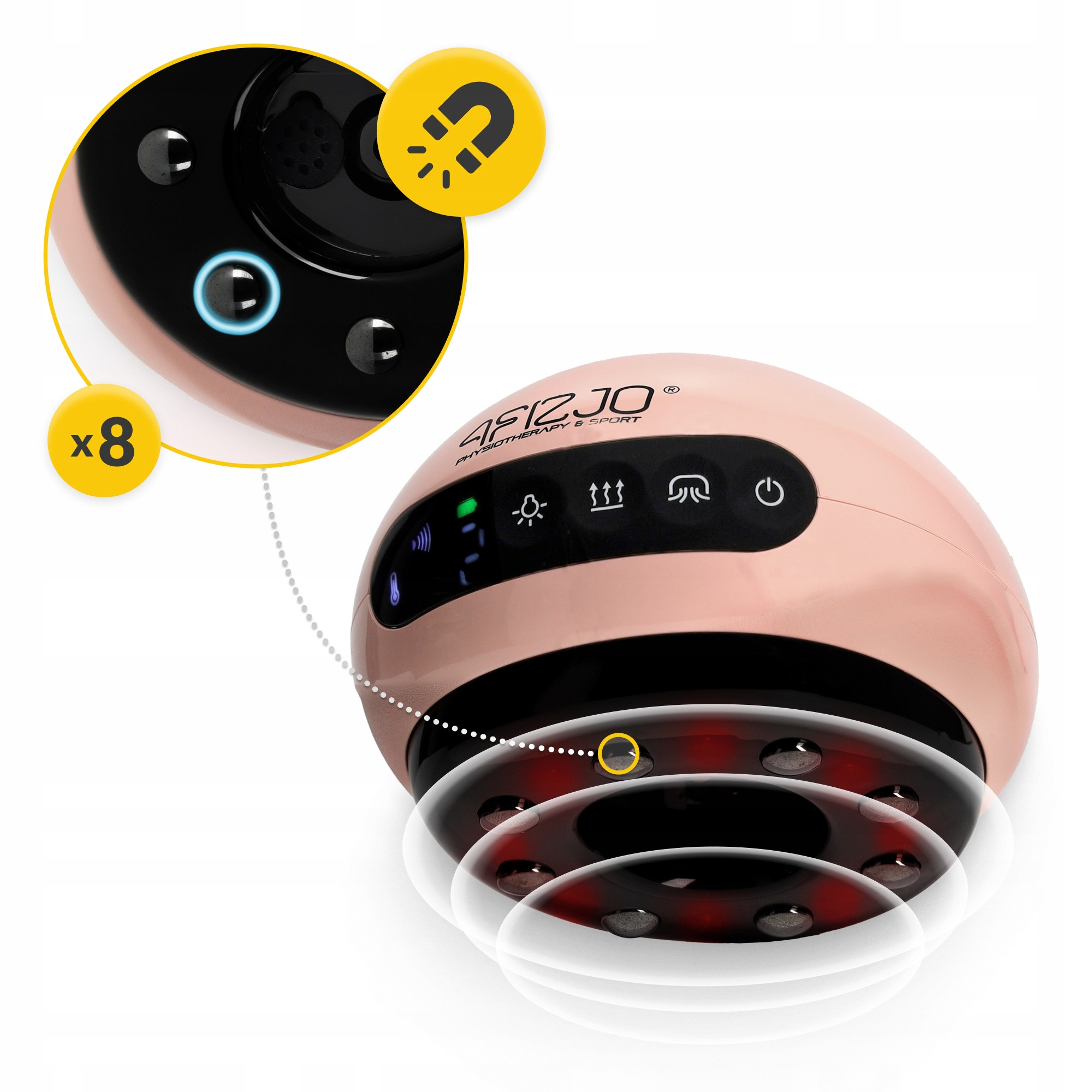 🧲 Магнітотерапія: 8 вбудованих магнітів створюють м'яке магнітне поле, яке допомагає зняти набряки, покращити кровотік та чинить знеболюючу дію.